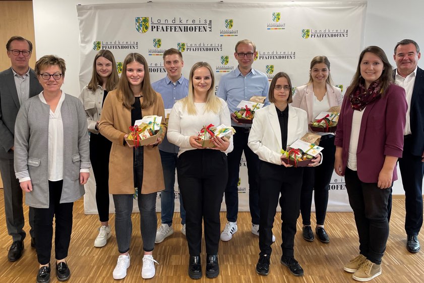 "Wir sind mit den Prüfungs-Ergebnissen sehr zufrieden", so Gürtner: "Ein dickes Lob an alle für ihren Fleiß und ihren Lerneifer. Als Arbeitgeber freut man sich natürlich, wenn die Nachwuchskräfte erfolgreich sind und gute Leistungen bringen." Der Landkreis Pfaffenhofen sei ein moderner Ausbildungs-Betrieb und biete laufend verschiedenste Ausbildungs-Berufe und duale Studiengänge an. Auch die berufliche Fort- und Weiterbildung werde durch den Landkreis als Arbeitgeber unterstützt und gefördert, unterstrich Gürtner.