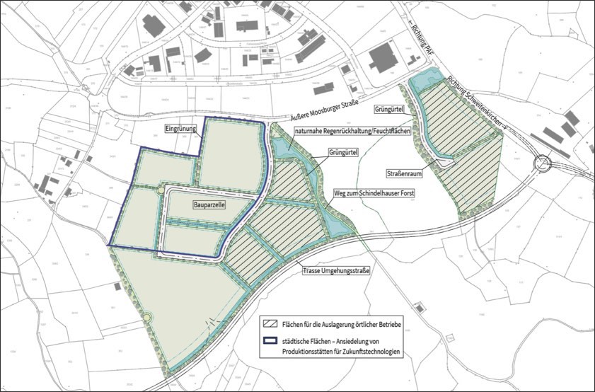 Die Stadt plant nach eigener Darstellung "am Kuglhof die Erschließung neuer Grundstücke, die Traditions-Betriebe aus dem Stadtgebiet für ihre Erweiterung dringend benötigen". Dadurch könne in der Kreisstadt neuer Raum – zum Beispiel für Wohnungen und Grünanlagen – geschaffen werden. "Außerdem sollen auf dem verkehrsgünstig gelegenen Areal Firmen eine Heimat finden, die Zukunfts-Technologien herstellen", heißt es weiter. "Kuglhof II leistet so einen wichtigen Beitrag, um den Wirtschafts-Standort Pfaffenhofen langfristig zu sichern." Das Besondere an diesem "grünen Gewerbepark" seien "verpflichtende Kriterien für Nachhaltigkeit und Artenschutz, die weit über das Übliche hinausgehen".