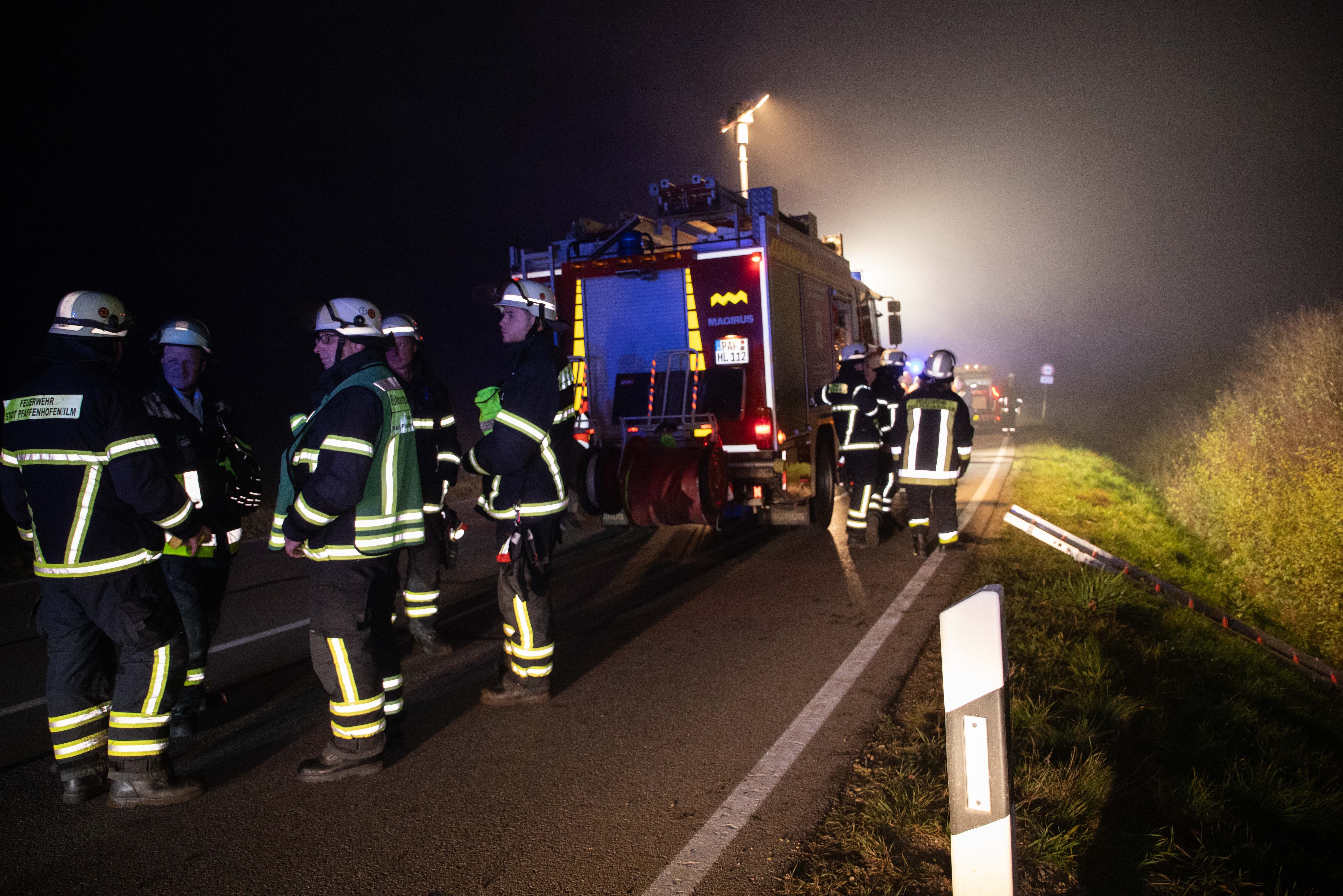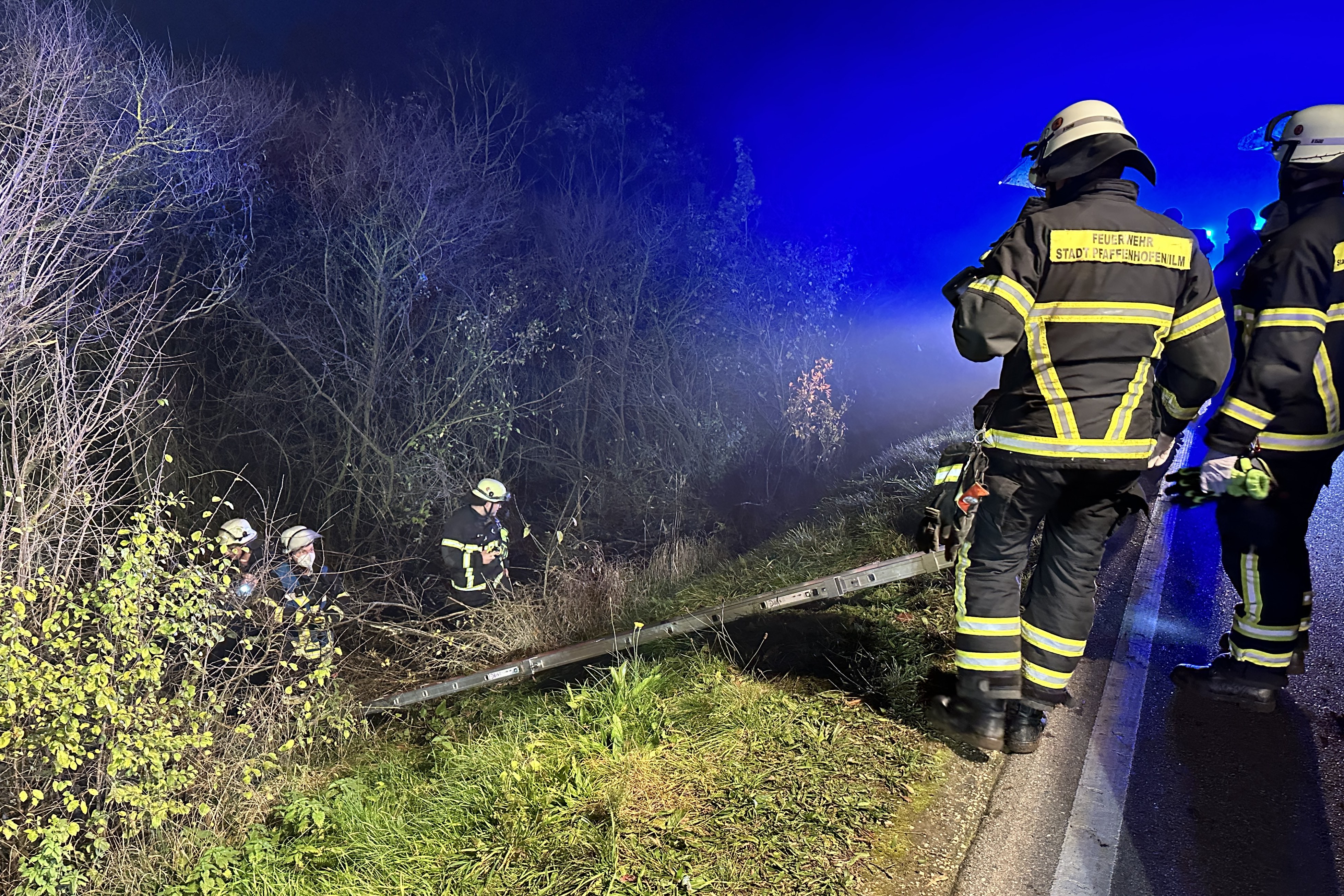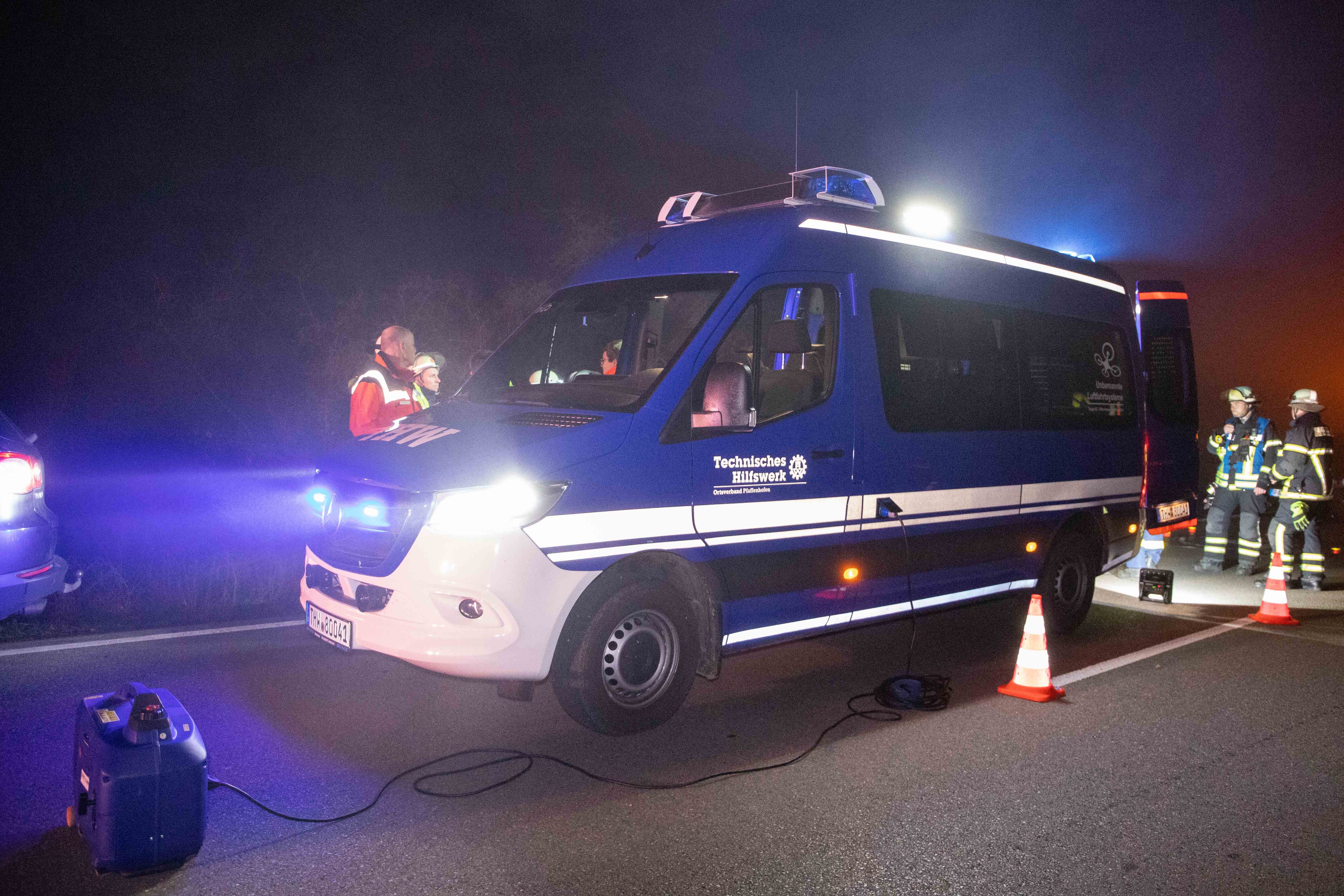 Das Unglück geschah im Gemeinde-Bereich von Pfaffenhofen. Die örtliche Polizeiinspektion war laut eigenen Angaben gegen 20.20 Uhr über den Verkehrsunfall mit dem Kleintransporter informiert worden. "Das Fahrzeug lag zwischen der Fahrbahn und den dortigen Bahn-Gleisen schwer beschädigt im Gebüsch", fasst ein Polizei-Sprecher zusammen. "Im Rahmen einer Absuche des Fahrzeugs konnte keine Person aufgefunden werden, weshalb eine umfangreiche Suchaktion von Polizei, Feuerwehr und THW eingeleitet wurde." Dabei sei auch eine spezielle Drohne des Technischen Hilfswerks (THW) aus der Kreisstadt zum Einsatz gekommen.