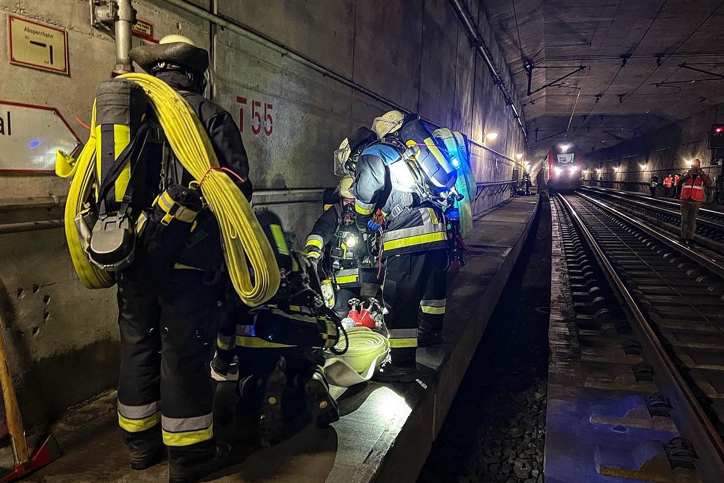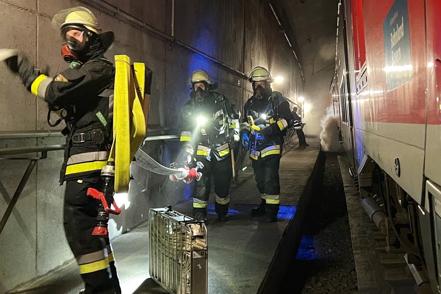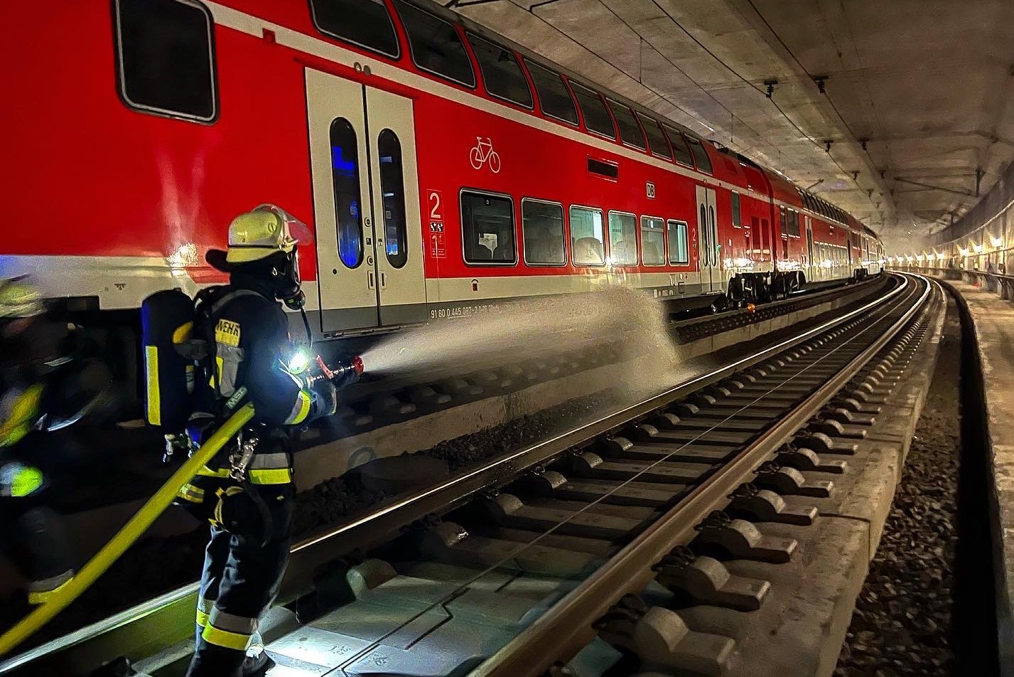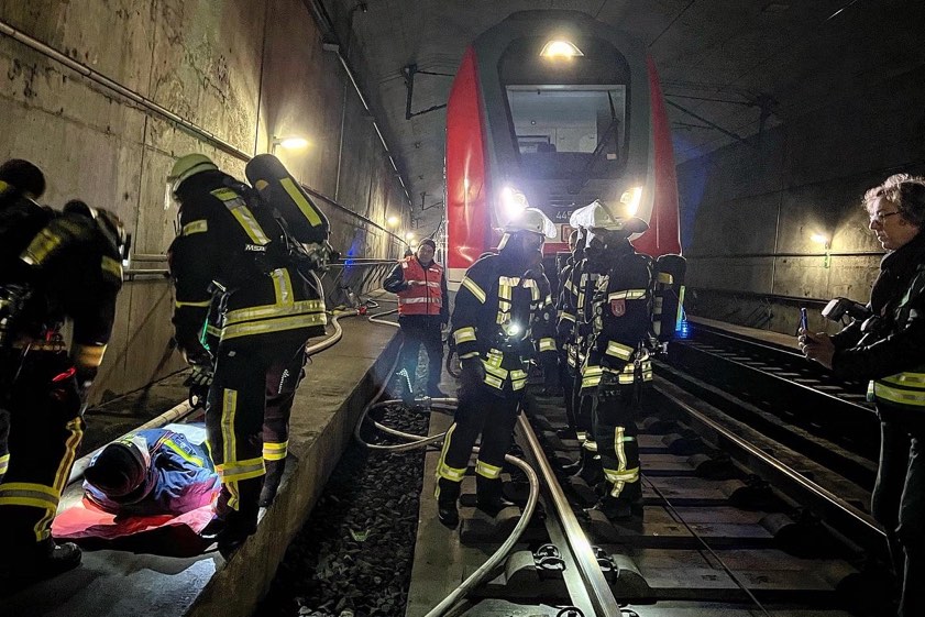 "Laut Plan fahren die Einheiten sofort die vordefinierten Notausgänge und die beiden Tunnel-Portale an." Bis zu dieser Zeit könne niemand sagen, wo der Zug stehe und wo sich genau die Brandstelle befinde. Herausfordernd sei die große Zahl von Personen, die sich in dem Zug befinden könnten. In den Fernzügen der Bahn können sich zwischen 200 und 800 Menschen befinden – unter Umständen auch Personen, die nicht gehfähig sind.