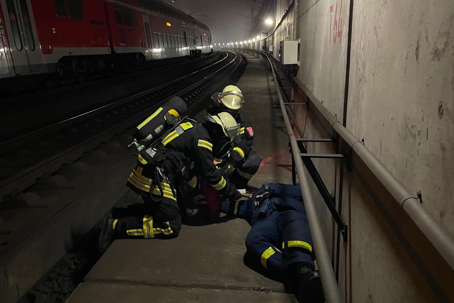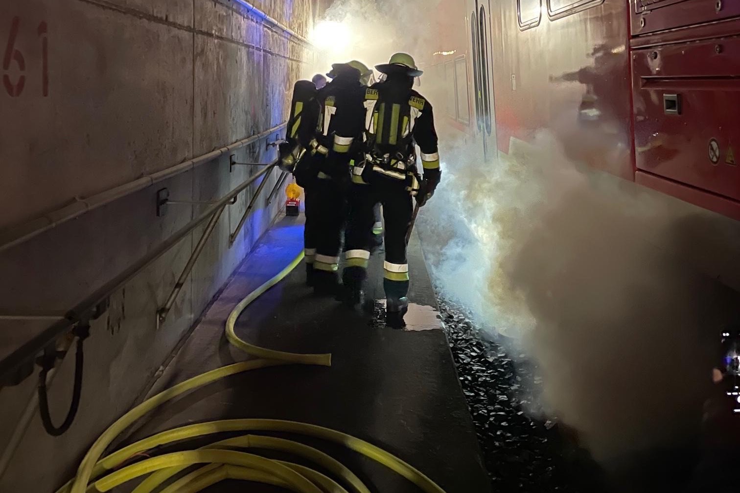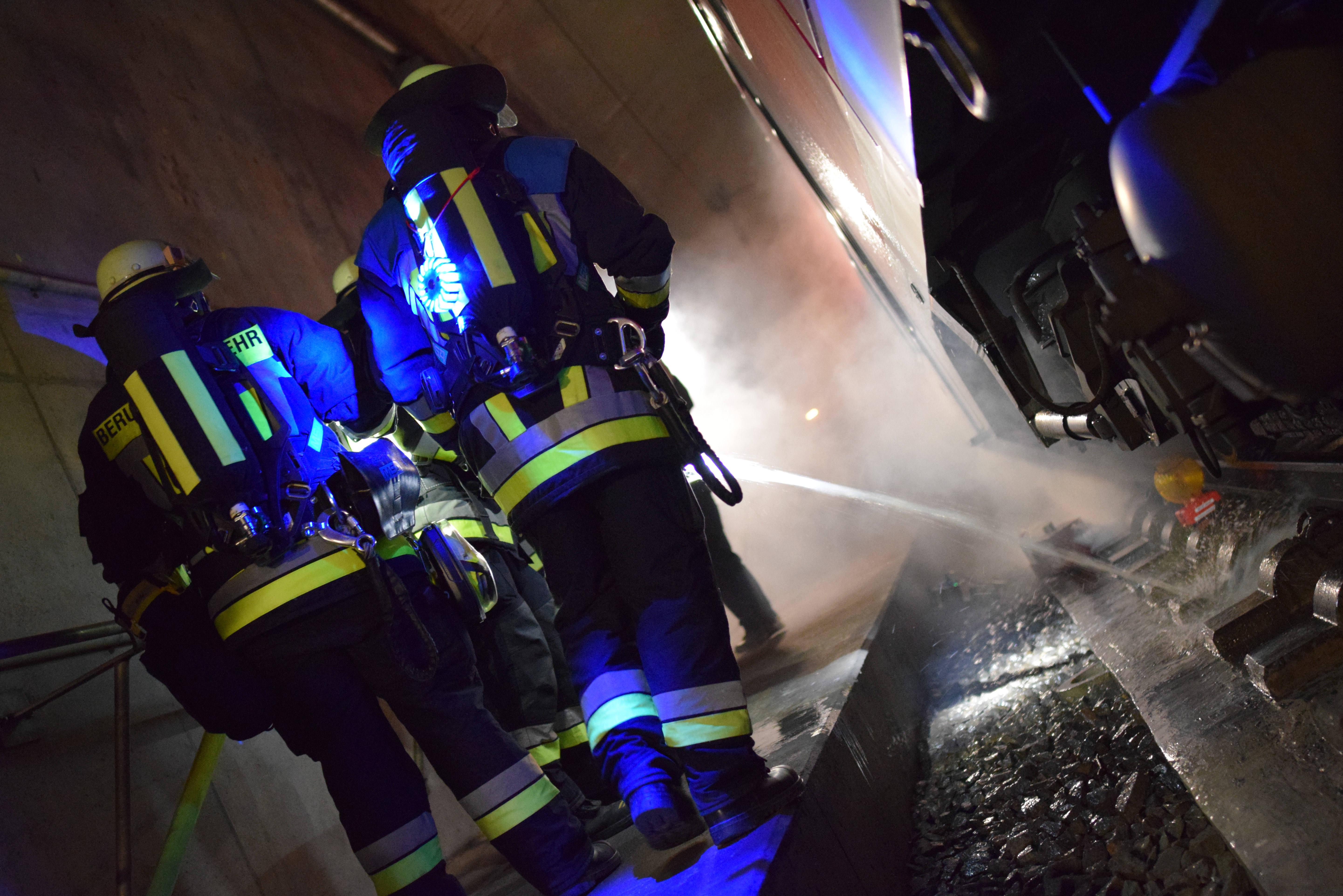 "Über die Portale und Nottreppenhäuser gelangen die Atemschutz-Trupps schnell auf die Gleisebene und können dem Einsatzleiter unverzüglich die Erkundungs-Ergebnisse mitteilen", erklärt die Berufsfeuerwehr. "Gleichzeitig markieren die Trupps mit farbigen Leuchten den Angriffs- und Rettungsweg für die nachfolgenden Einheiten."