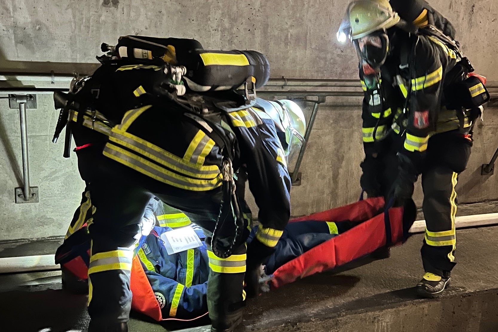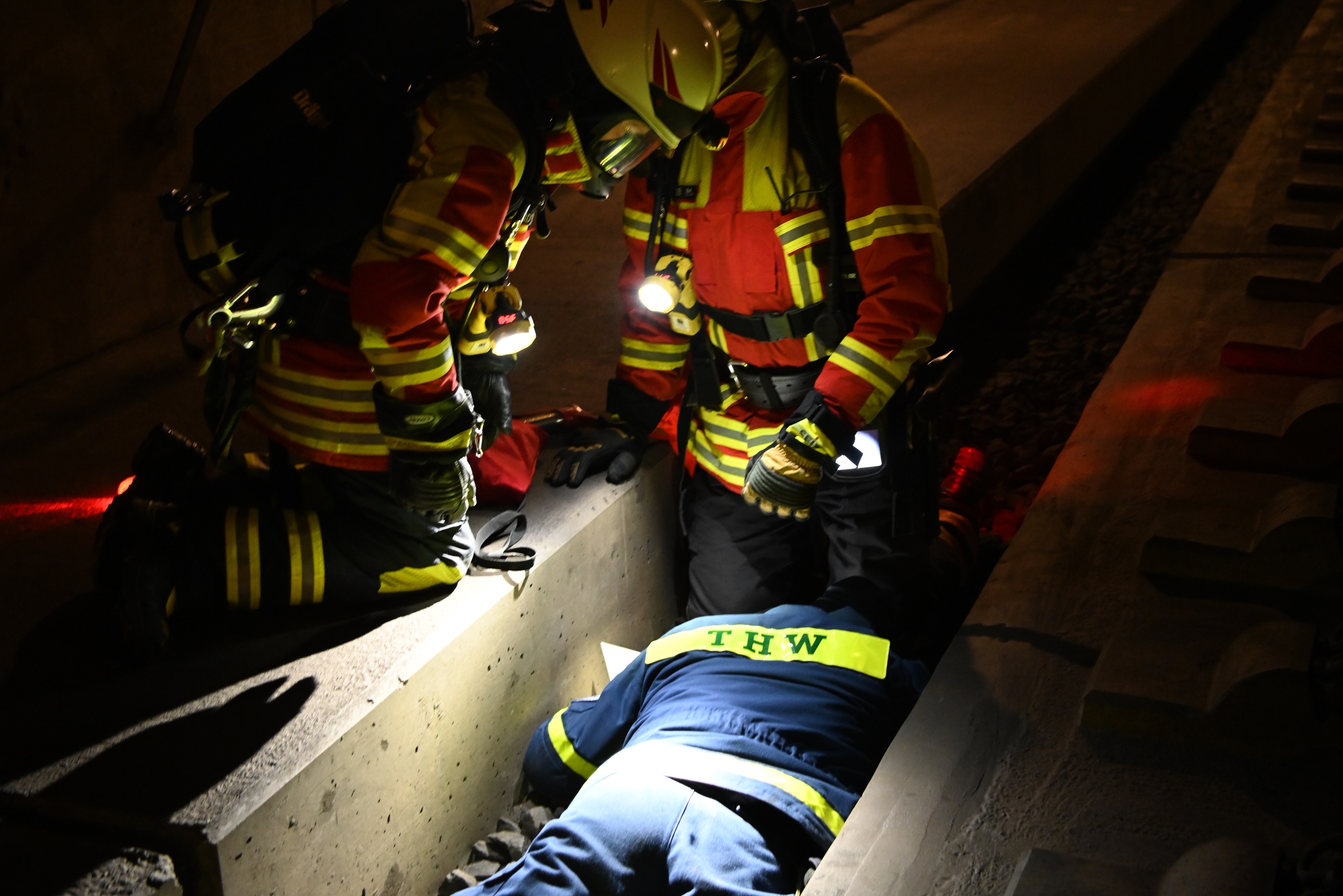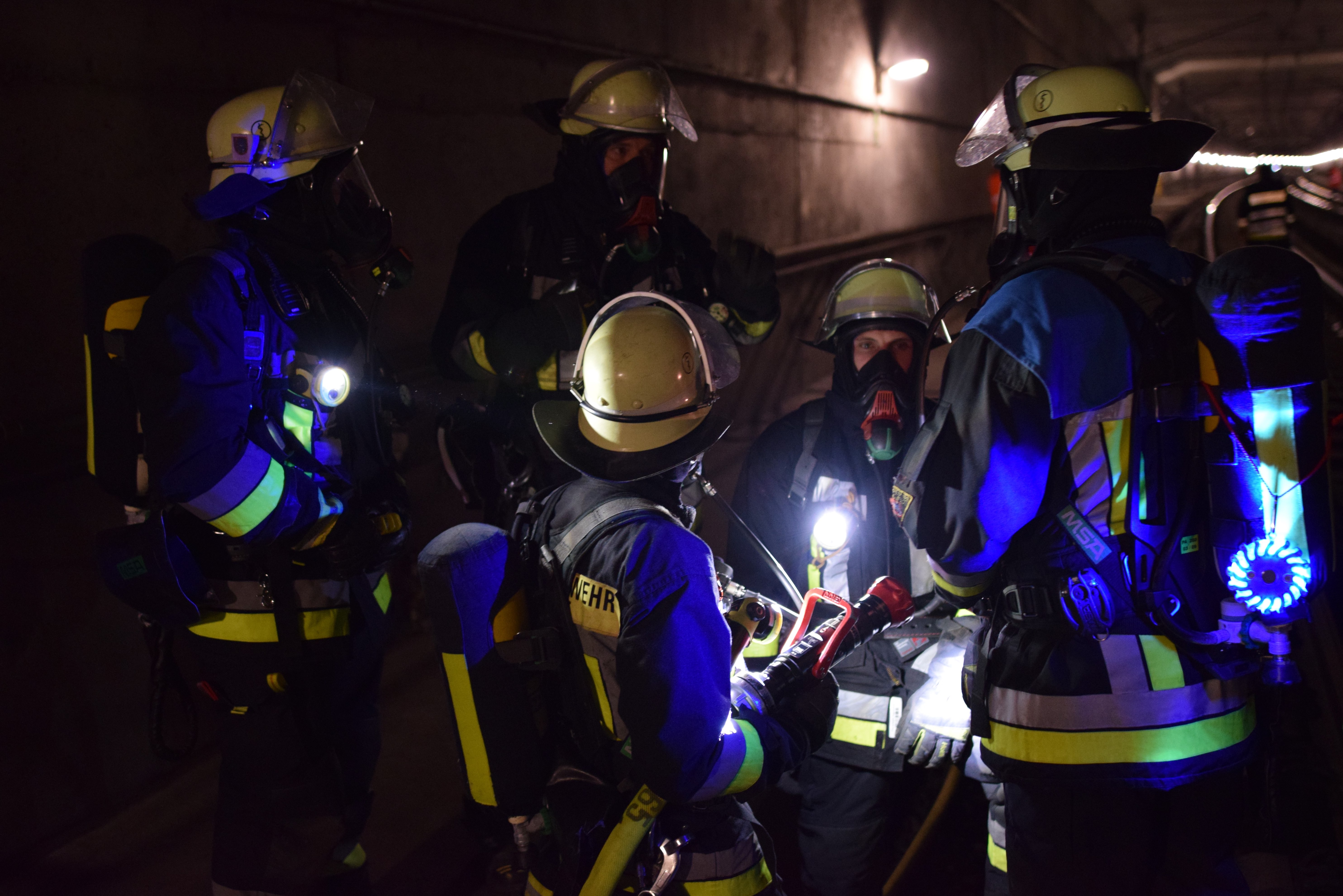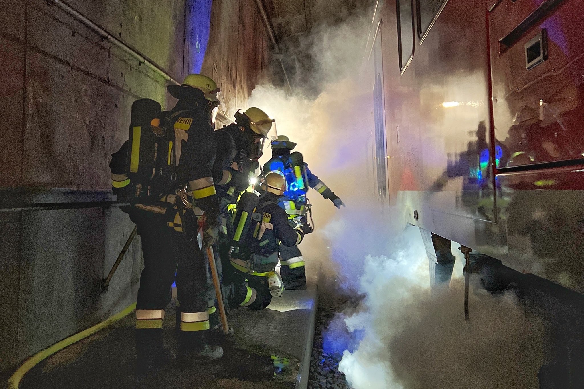 "Über die Portale und Nottreppenhäuser gelangen die Atemschutz-Trupps schnell auf die Gleisebene und können dem Einsatzleiter unverzüglich die Erkundungs-Ergebnisse mitteilen", erklärt die Berufsfeuerwehr. "Gleichzeitig markieren die Trupps mit farbigen Leuchten den Angriffs- und Rettungsweg für die nachfolgenden Einheiten."