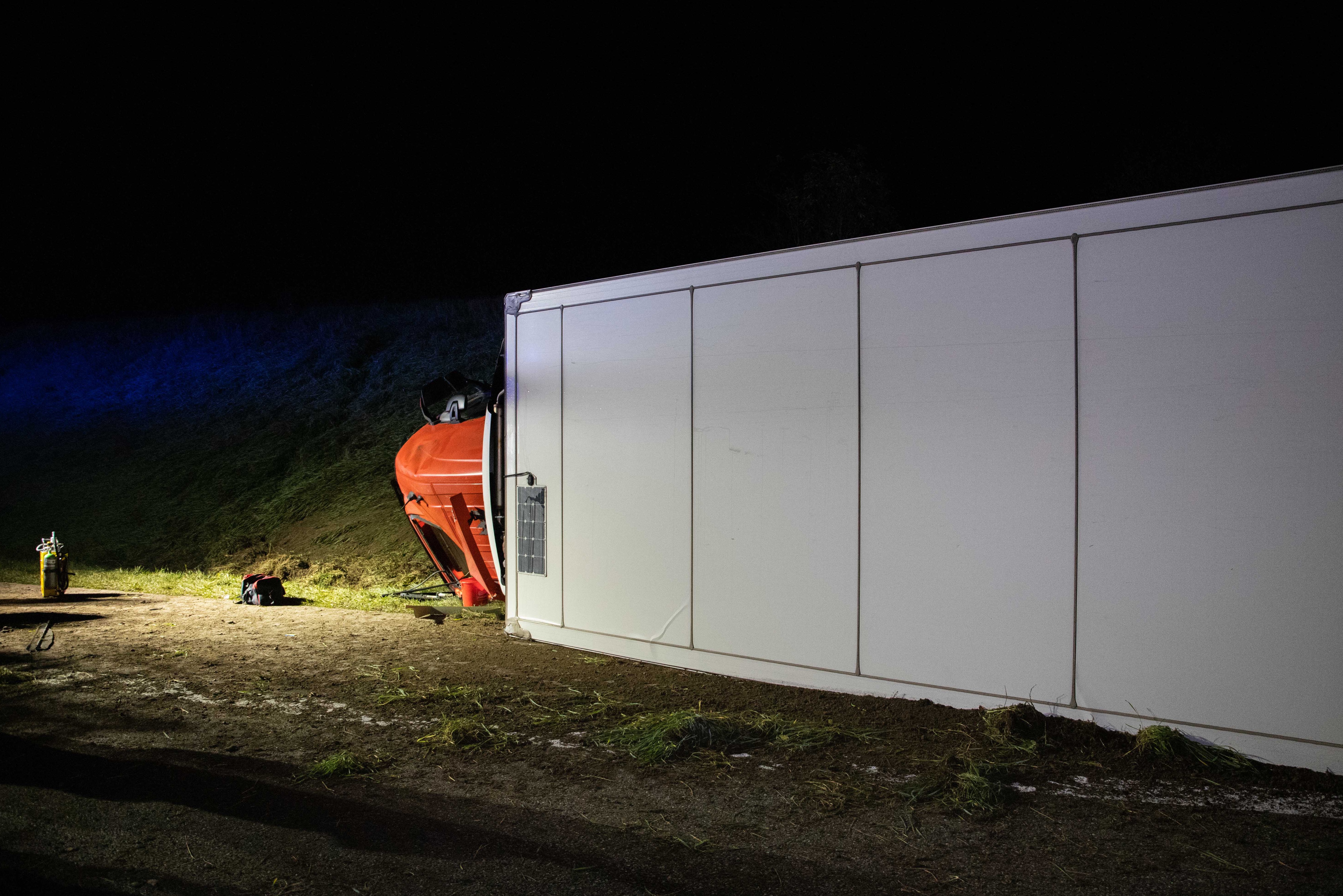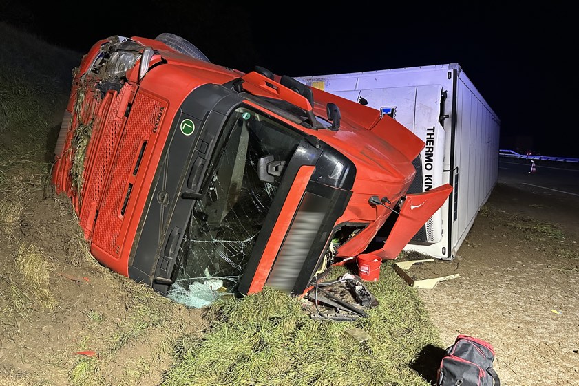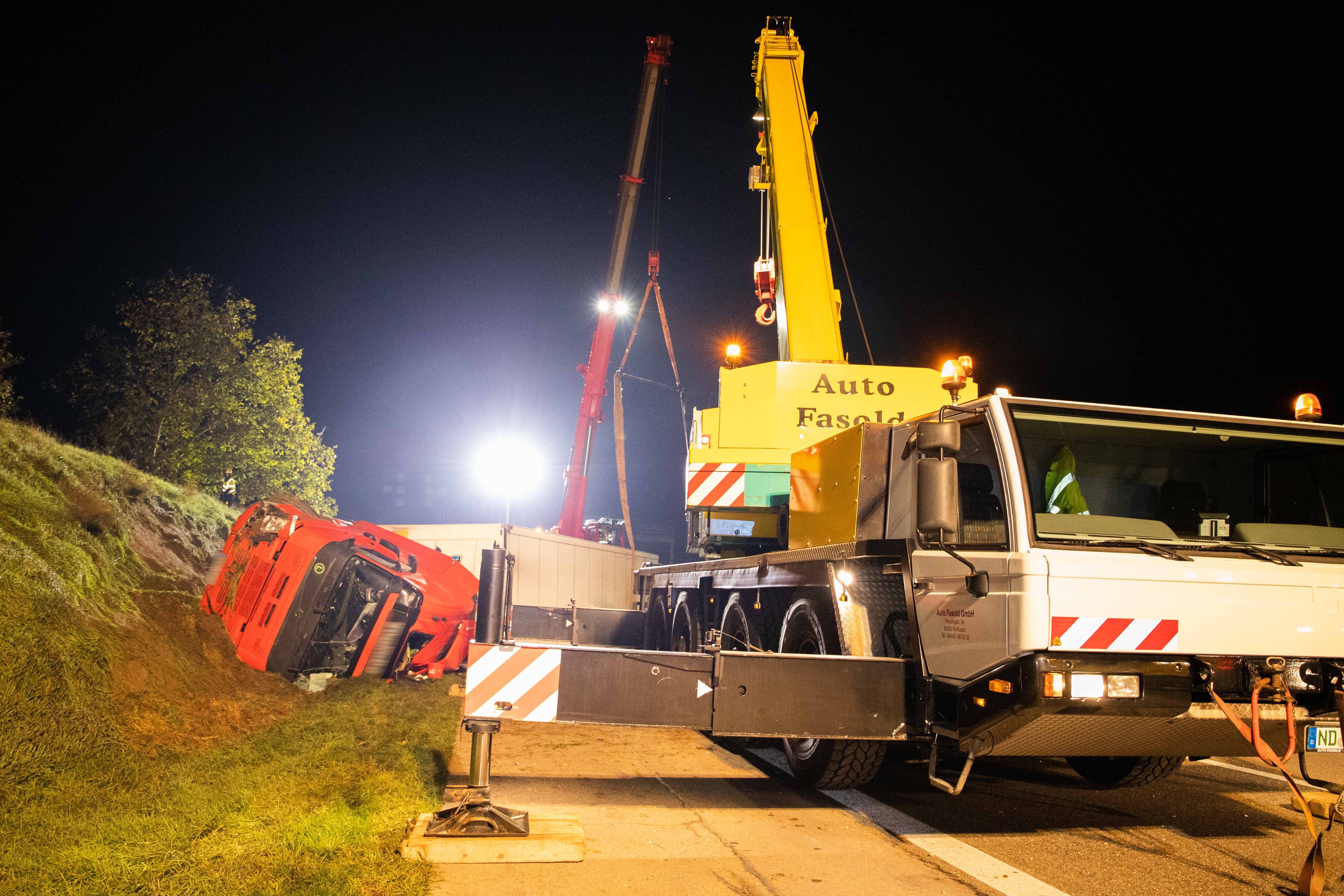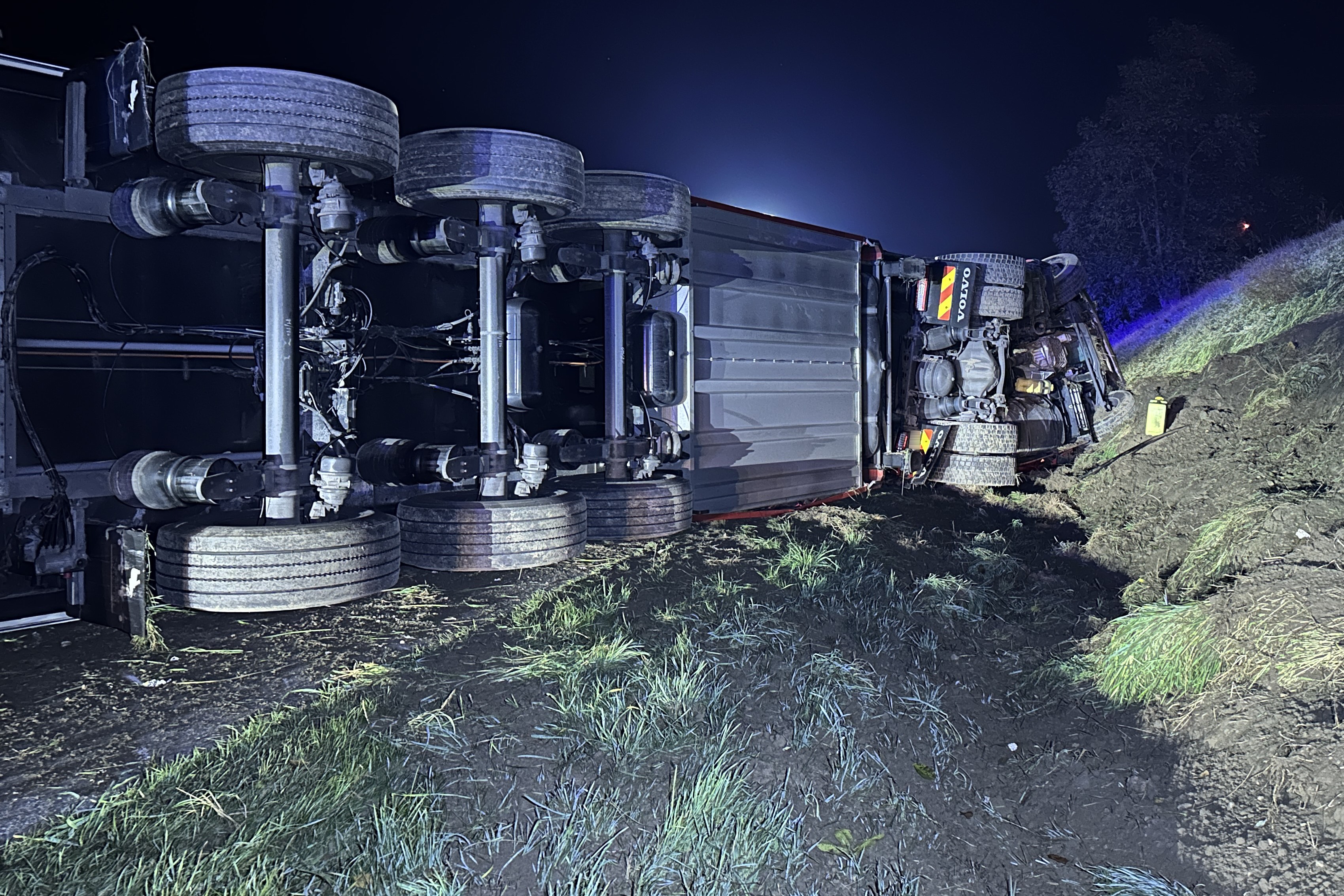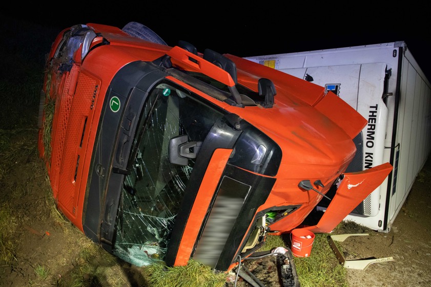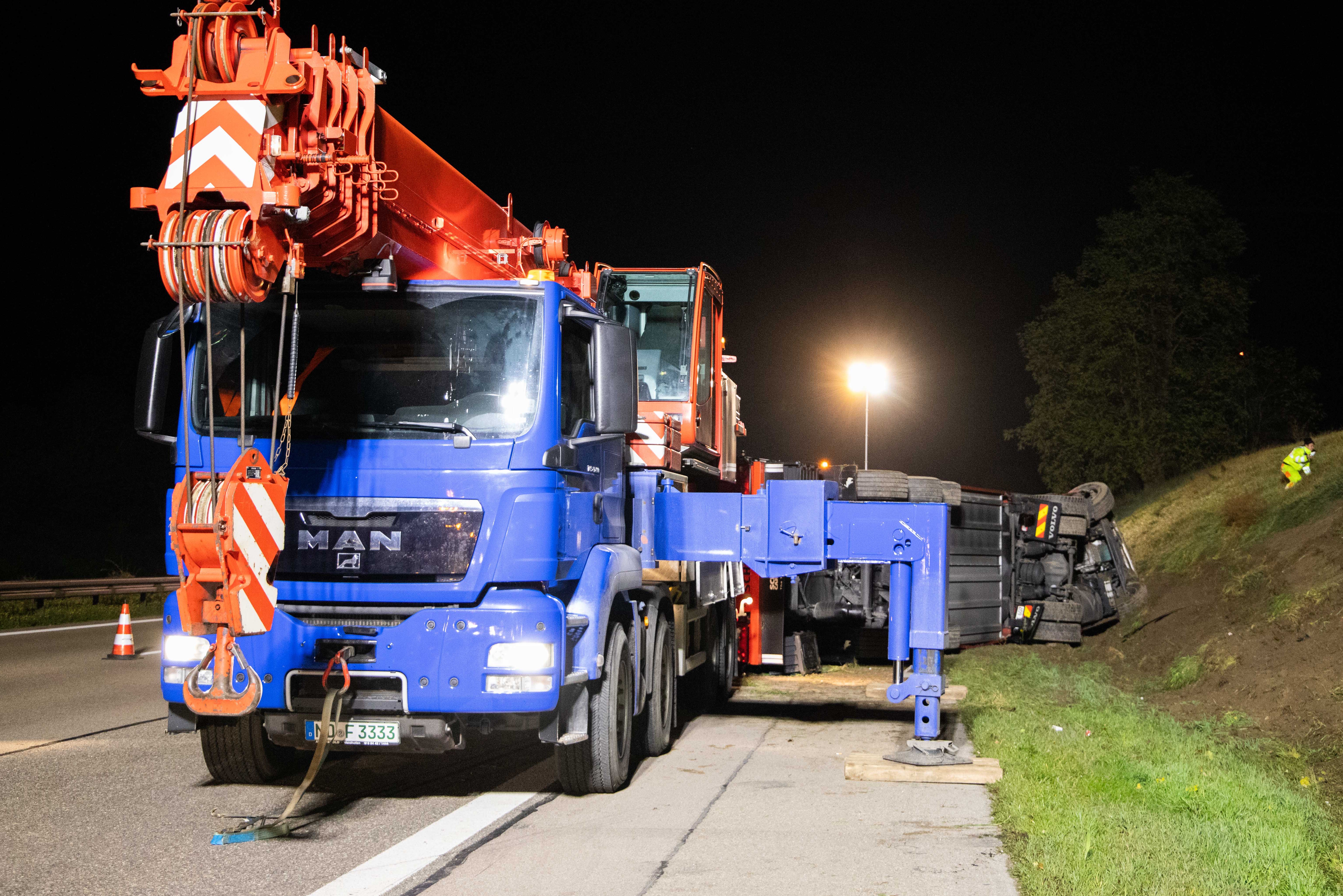63-Jähriger kam mit seinem Sattelzug von der Strecke ab: Der Lkw streifte die Leitplanke, fuhr dann eine Böschung hoch und kippte um.