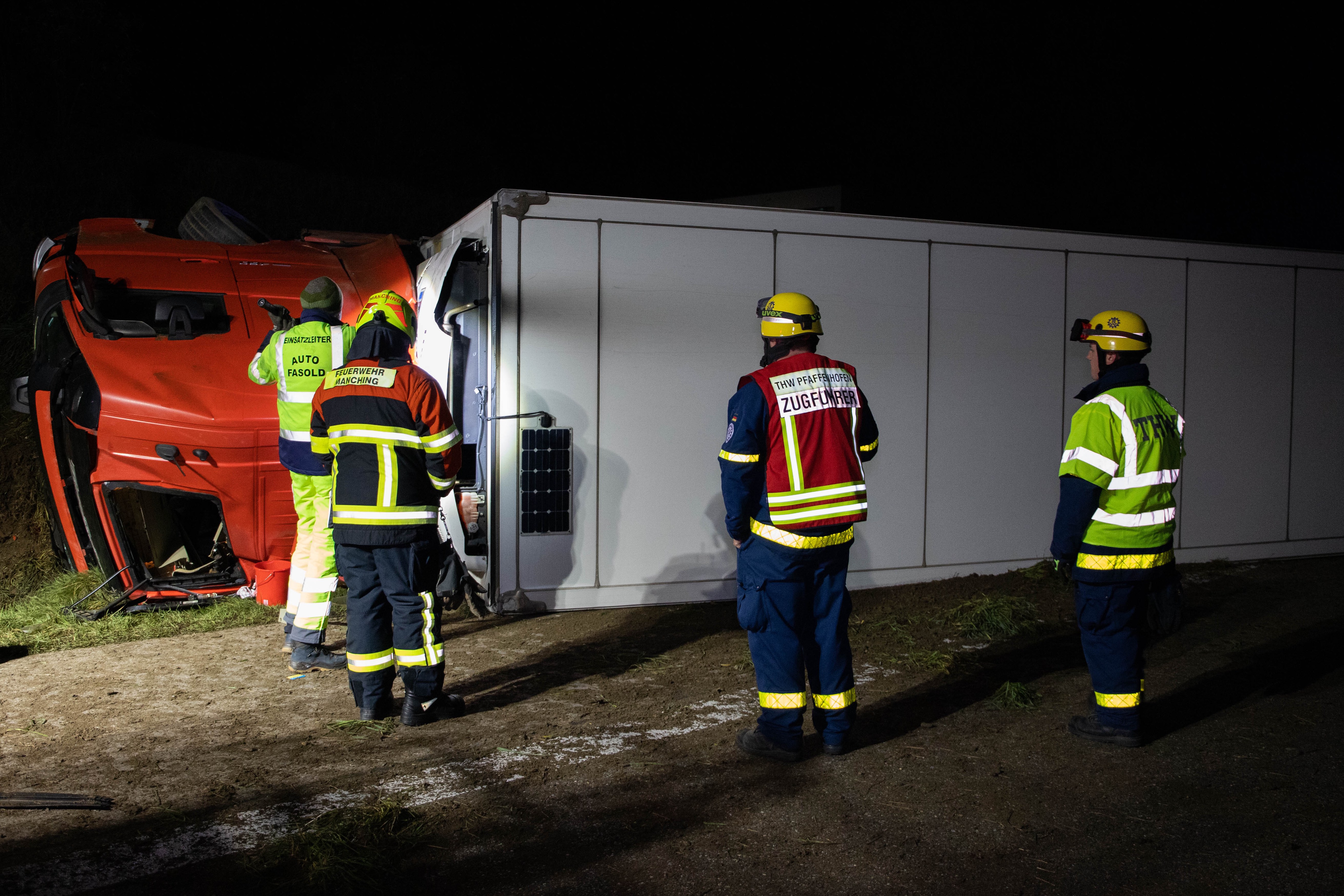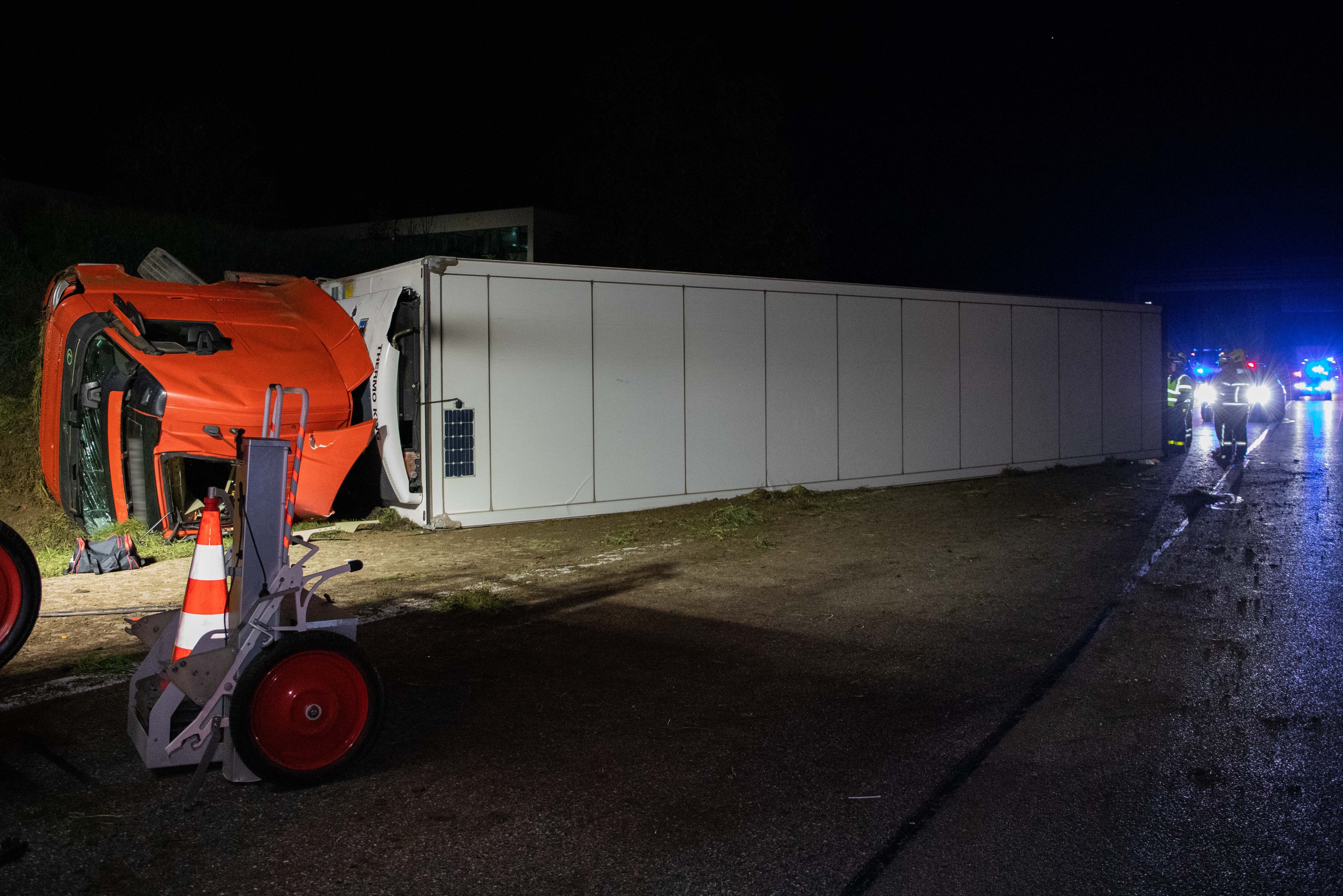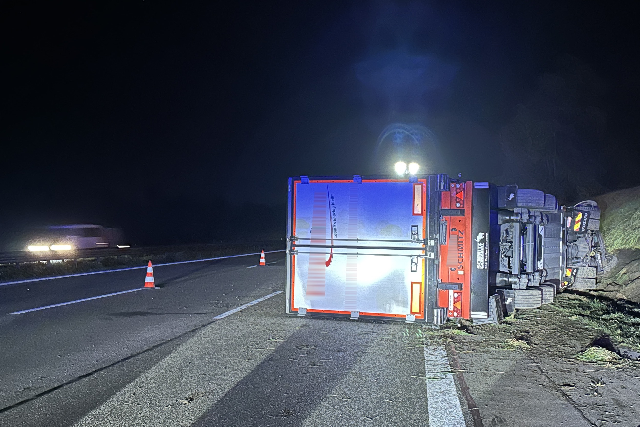 Der Lastwagen-Fahrer sei bei dem Unglück nicht verletzt worden, teilte die Verkehrspolizei-Inspektion aus Ingolstadt heute mit. Der entstandene Sachschaden wurde nach ersten Einschätzung insgesamt in einer Größenordnung von 100 000 Euro angesiedelt. Für die Bergung des Sattelzugs war schweres Gerät erforderlich. Die Autobahn war in diesem Bereich über ungefähr fünf Stunden hinweg teilweise gesperrt – in dieser Zeit konnte der Verkehr auf der linken Spur an der Unfallstelle vorbeirollen. Vor Ort im Einsatz waren auch die Autobahn-Meisterei, das Technische Hilfswerk (THW) und die Freiwillige Feuerwehr aus Manching.