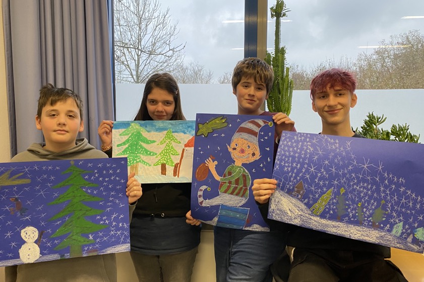Die jungen Künstlerinnen und Künstler – vier von ihnen auf dem Foto oben – bringen mit Pinsel und Farbe ihre Gedanken zu ausgewählten Gedichten und kurzen Geschichten der Weihnachts-Literatur zu Papier. Ihre Werke sind bis Heiligabend, täglich wechselnd, im Schaufenster sowie auf der Facebook-Seite des Geschäfts zu sehen: Ein Adventskalender der ganz besonderen Art, den die Inhaber-Familie Moll aufgrund erfreulichen Zuspruchs nun schon im elften Jahr veranstaltet.