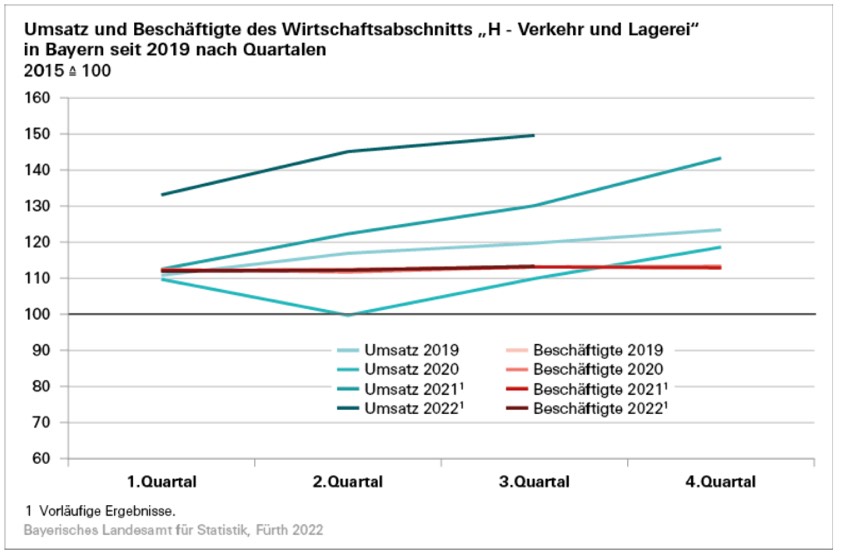Im Vergleich zum Vorjahres-Quartal nahm der Umsatz im Wirtschafts-Abschnitt "Erbringung von sonstigen wirtschaftlichen Dienstleistungen" mit einem Plus von 19,3 Prozent am stärksten zu, gefolgt vom Wirtschafts-Abschnitt H "Verkehr und Lagerei" mit plus 15,0 Prozent. Im Wirtschafts-Abschnitt "Erbringung von freiberuflichen, wissenschaftlichen und technischen Dienstleistungen" kletterte der Umsatz um 8,5 Prozent und im Wirtschafts-Abschnitt "Information und Kommunikation" um 7,7 Prozent.