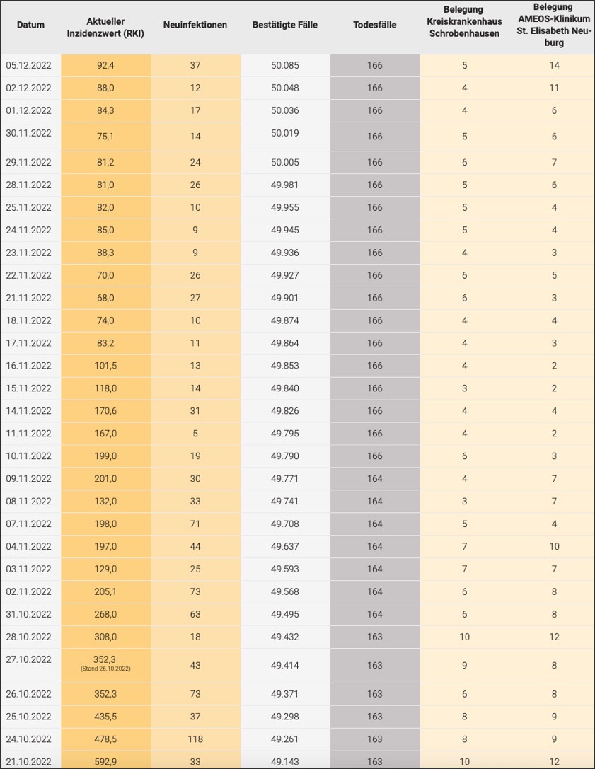Der Wert der Sieben-Tage-Inzidenz – also die Zahl der registrierten Corona-Neuinfektionen binnen einer Woche pro 100 000 Einwohner – beträgt für den Kreis Neuburg-Schrobenhausen laut jüngsten Angaben des Robert-Koch-Instituts (RKI) 92,4 (Stand: heute). Zur Einordnung: Am Freitag hatte der Wert bei 88,0 gelegen, am Donnerstag bei 84,3, am Mittwoch bei 75,1, am Dienstag bei 81,2, am vergangenen Montag bei 81,0 (siehe auch Tabelle unten). Dazu sollte man laut Landratsamt beachten: "Das Landesamt für Gesundheit und Lebensmittel-Sicherheit (LGL) übermittelt die Daten/Fallzahlen nicht mehr am Wochenende und an den Feiertagen an das RKI, sondern am folgenden Arbeitstag."