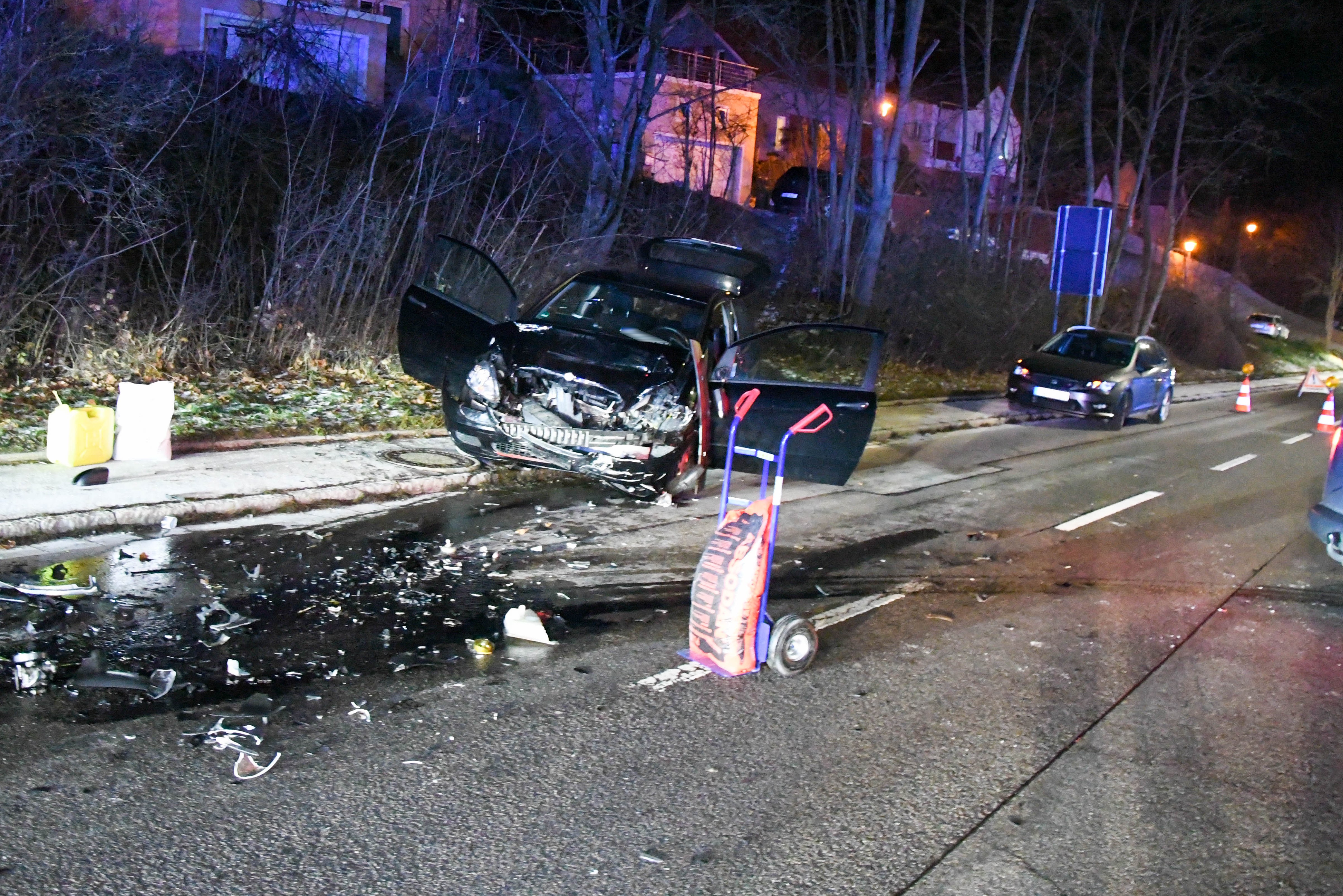 Betrunkener 61-Jähriger knallte mit seinem Pkw erst ins Heck eines Kleintransporters und kollidierte dann frontal mit dem Gegenverkehr.