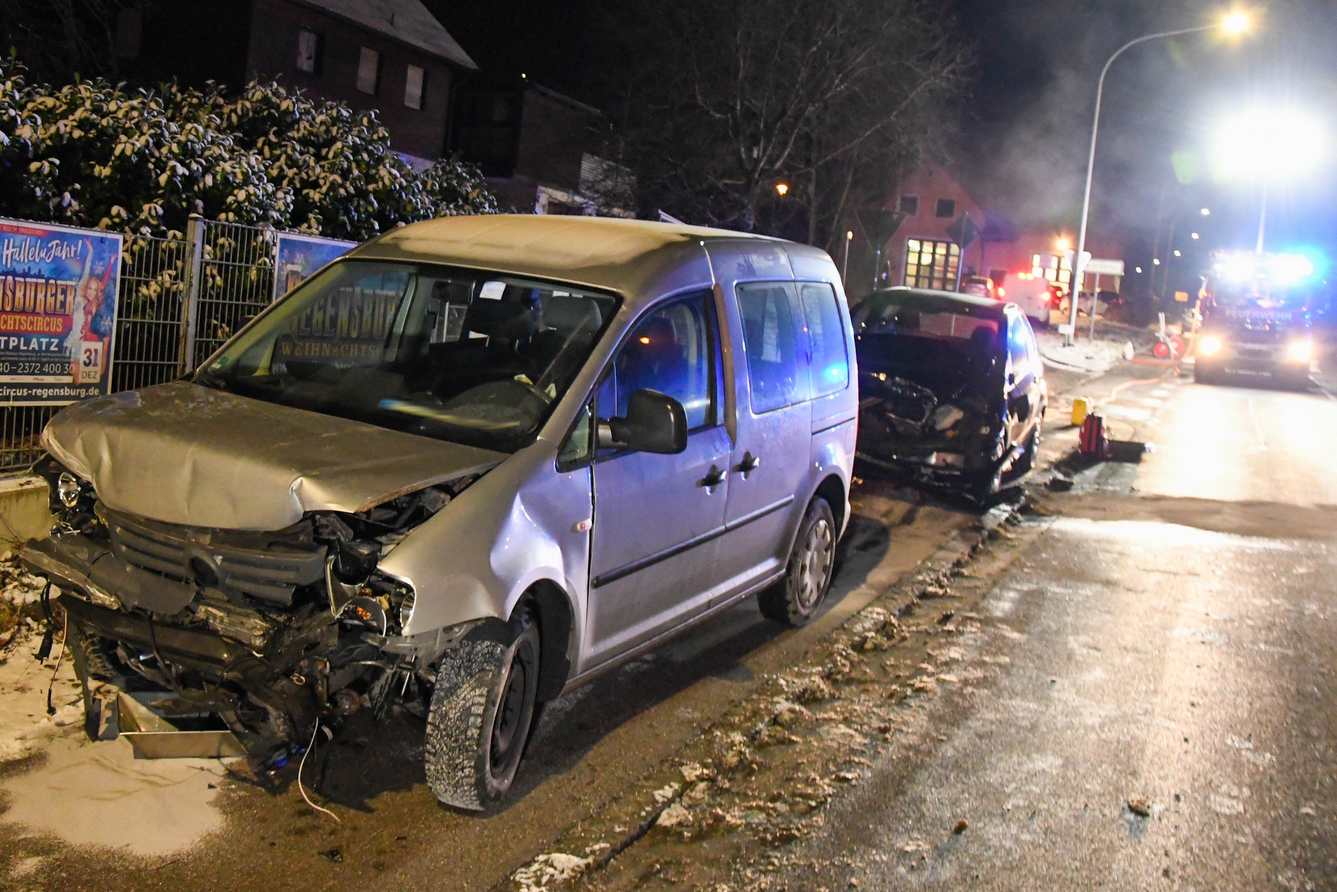 Wie die örtliche Polizeiinspektion heute berichtete, wollte ein Kleintransporter-Fahrer, der – von Regensburg her kommend – auf der besagten Staatsstraße unterwegs war, nach rechts auf die Untere Fischerbergstraße abbiegen. Dies habe der nachfolgende 61-jährige Autofahrer allerdings zu spät bemerkt. Sein Wagen krachte laut Schilderung der Polizei zunächst ins Heck des Kleintransporters. Anschließend habe der Unfall-Verursacher seinen Wagen in den Gegenverkehr gelenkt, woraufhin es zum Frontal-Zusammenstoß mit einem entgegenkommenden Pkw gekommen sei.