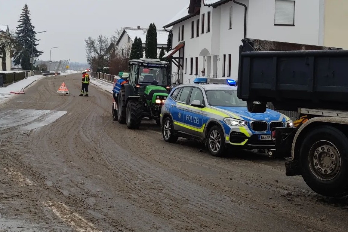 (ty) Ein Frontal-Zusammenstoß zwischen einem Lastwagen und einem Pkw hat am gestrigen Nachmittag im Gemeinde-Bereich von Wolnzach einen Verletzten und hohen Sachschaden gefordert. Gekracht hatte es gegen 15 Uhr im Ortsteil Königsfeld auf der Staatsstraße 2232, die in diesem Bereich auch Schmädelstraße heißt. Nach Angaben der Polizei war ein 31 Jahre alter Mainburger mit einem Lkw – von Geisenfeld her kommend – in Richtung Pfaffenhofen unterwegs, als er verkehrsbedingt bremsen musste. Auf winterlicher Strecke sei der Laster dabei ins Rutschen geraten. Der Mainburger sei nun nach links ausgewichen, um einen Auffahr-Unfall zu verhindern.