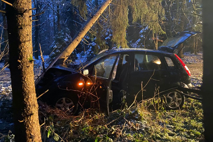 19-Jähriger verlor bei Bergkirchen auf winterglatter Strecke die Kontrolle über seinen Pkw. Der Beifahrer (15) musste ins Krankenhaus.