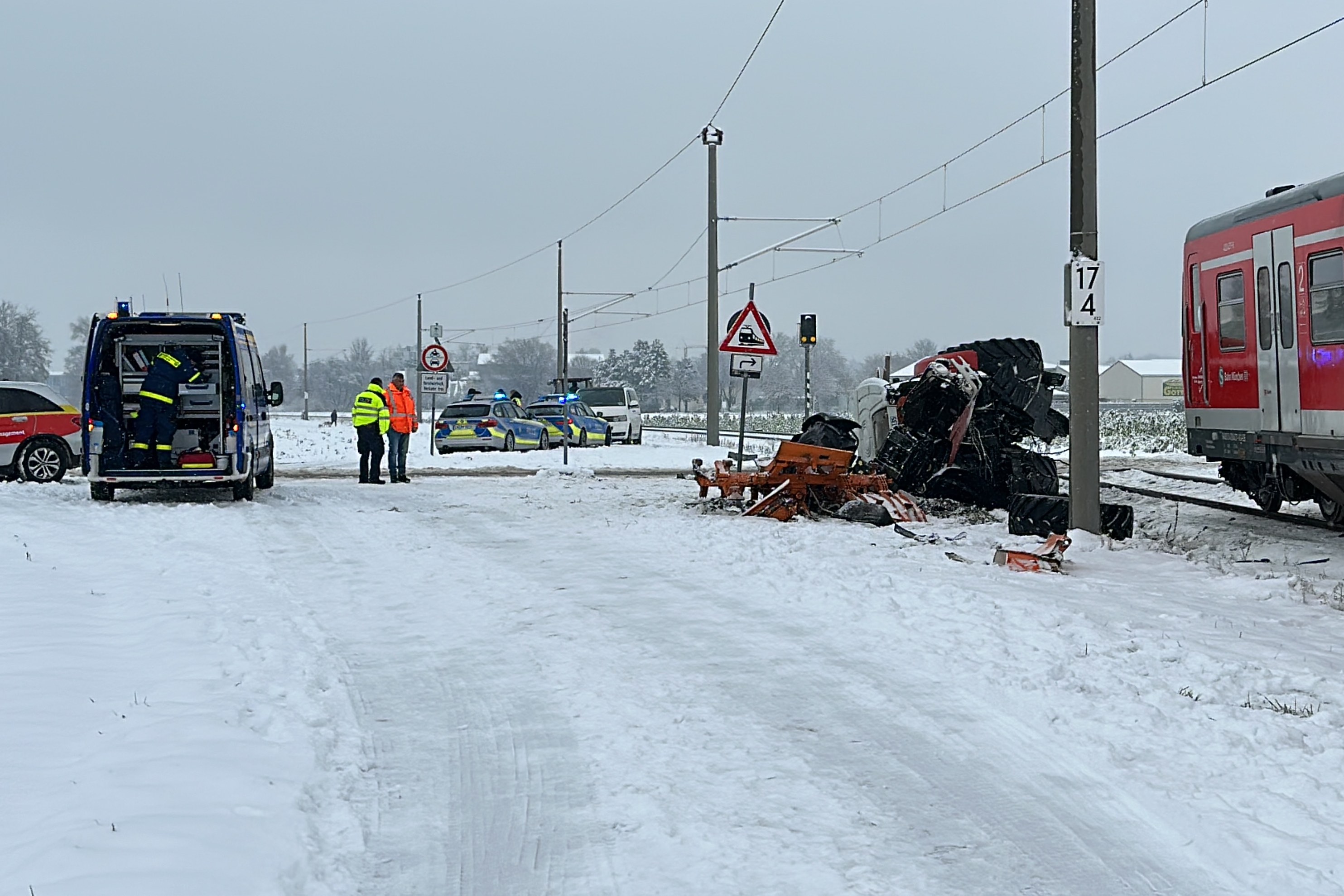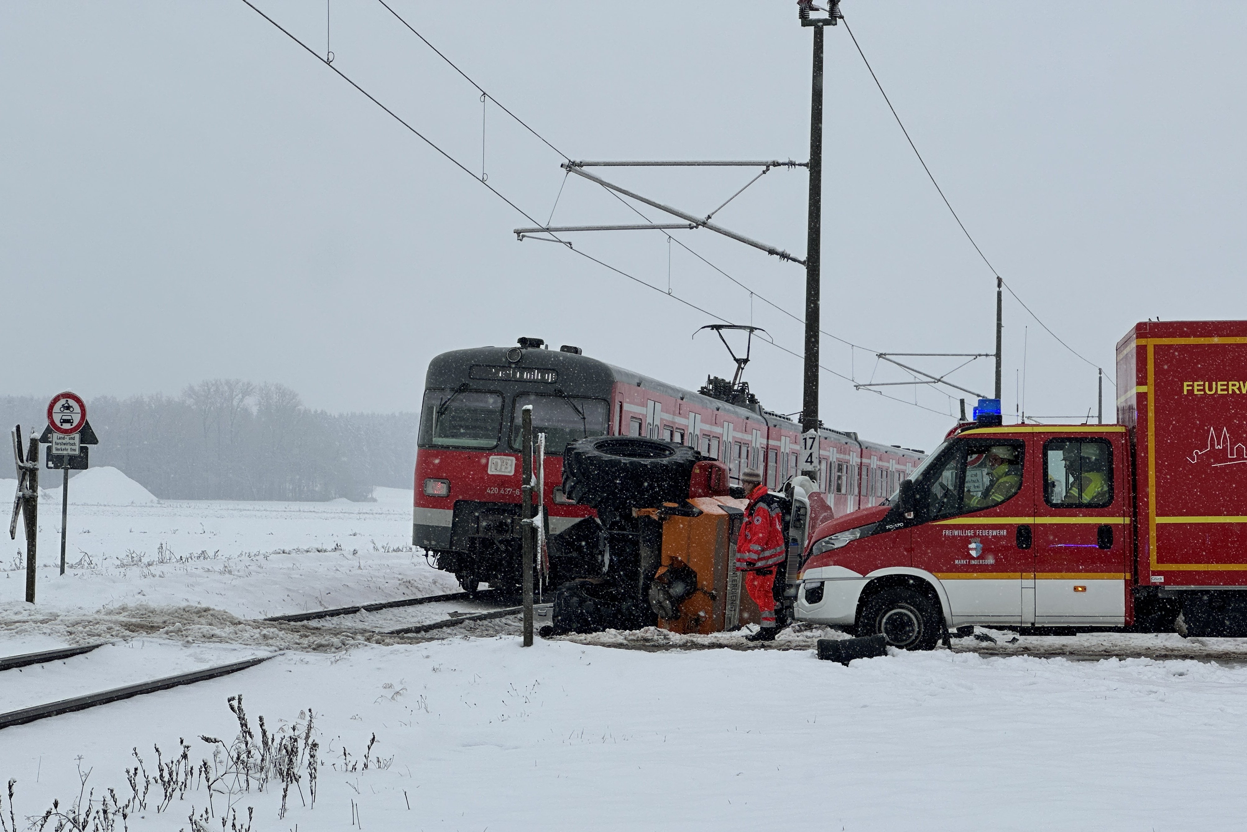 Schwerer Unfall in Markt Indersdorf: Winterdienst-Fahrzeug von S-Bahn erfasst
