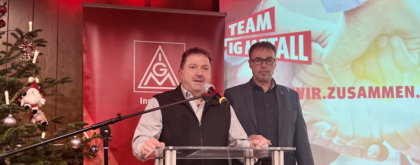 Die betrieblichen Auseinandersetzungen, wie zum Beispiel die bei der Aurora-Lichtwerke-GmbH, waren weitere Punkte des Jahresrückblicks. Hubert Roßkopf, Betriebsrats-Vorsitzender bei Aurora: "Ohne die IG-Metall an unserer Seite, hätten wir eine Vereinbarung für eine Transfer-Gesellschaft vermutlich nicht hinbekommen." Gil gab sich zum Abschluss seines Berichtes davon überzeugt: "Gerade das aktuelle Jahr hat gezeigt, wie wichtig eine starke Gewerkschaft in einer Zeit mit gefühlt sich schier endlos aneinanderreihenden Krisen ist. Dies sehen wir auch an einer deutlich positiven Mitglieder-Entwicklung."