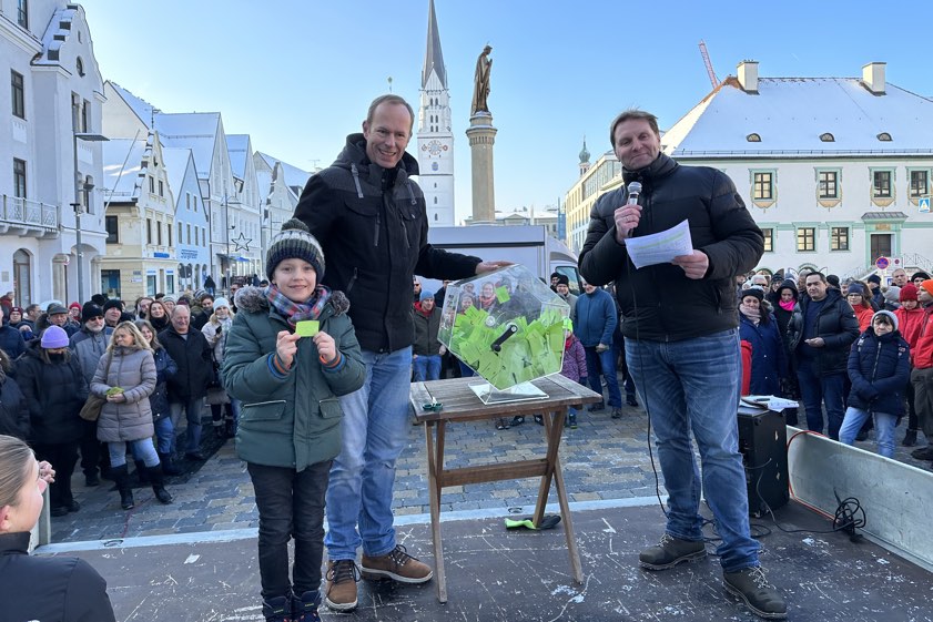 In den vergangenen beiden Jahren hatte angesichts der Corona-Pandemie auf eine öffentliche Ziehung der Gewinn-Nummern verzichtet werden müssen. Stattdessen war bekanntlich ein Live-Stream angeboten worden, damit Interessierte zumindest übers Internet an der Verlosung teilnehmen konnten. Gestern herrschte nun wieder Hochspannung auf dem Hauptplatz. Bis zur letzte Sekunde, so berichten die Verantwortlichen, waren noch Los-Abschnitte abgegeben und in die Trommel geworfen worden. Zunächst wurden dann die Gewinner-Lose von "Glücksengel" Benedikt Reisinger der Reihe nach gezogen sowie von Notarin Struck dokumentiert. Die Verkündung der Gewinn-Nummern erfolgte anschließend, beginnend mit Platz zehn.