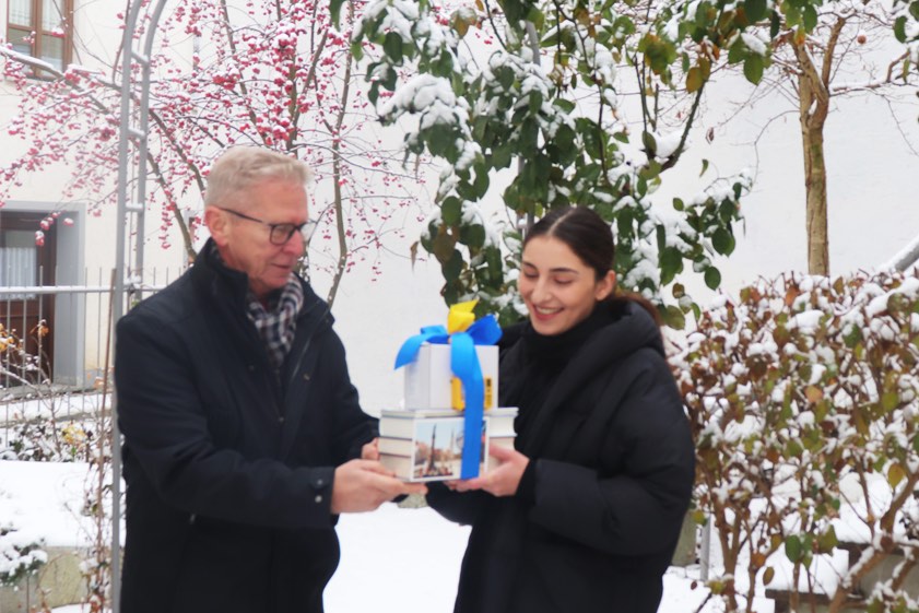 Vize-Bürgermeister Roland Dörfler verabschiedete Anahit Bagradjans am Flaschlturm.