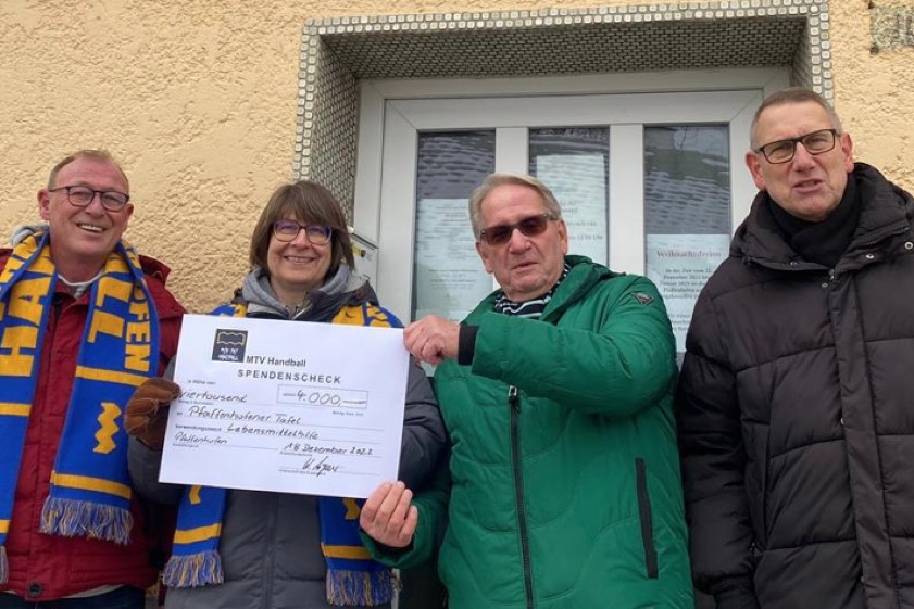 "Das Ergebnis war schlicht und ergreifend bombastisch", heißt es aus der Handball-Abteilung. "Kein Preis ging unter 50 Euro weg. Somit wurde trotz oder vielleicht auch gerade wegen der aktuellen Krisen-Situation eine Rekord-Summe von 3700 Euro erzielt." Dieser Betrag sei von der Abteilungs-Leitung auf 4000 Euro aufgerundet worden. Zugute kam dieses Geld nun der "Tafel"-Einrichtung in Pfaffenhofen. Walter Aigner und Kassenwartin Annemarie Hagl übergaben den entsprechenden Spenden-Scheck an Gerald Eisenberger und Norbert Ertl vom Förder-Verein der "Tafel" (Foto oben).
