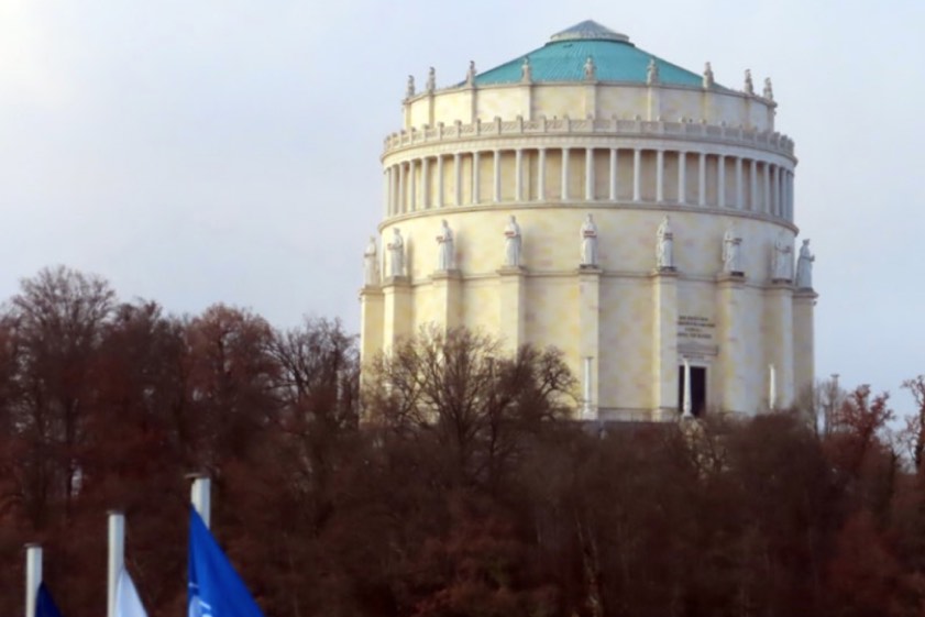Zur Historie der Befreiungshalle erklärt die bayerische Schlösser-Verwaltung: "Die von König Ludwig I. in Auftrag gegebene Gedenkstätte für die siegreichen Schlachten gegen Napoleon in den Befreiungskriegen 1813 bis 1815 wurde von Friedrich Gärtner in Anlehnung an antike und christliche Zentralbau-Ideen begonnen und 1863 von Leo von Klenze nach geänderten Plänen vollendet. Die Strebe-Pfeiler der Außen-Fassade bekrönen 18 Kolossal-Statuen als Allegorien der deutschen Volksstämme." Die Zahl 18 versinnbildliche dabei auch das Datum der Völkerschlacht bei Leipzig (18. Oktober 1813), an dem die Truppen Napoleons von der Koalition vernichtend geschlagen wurden.