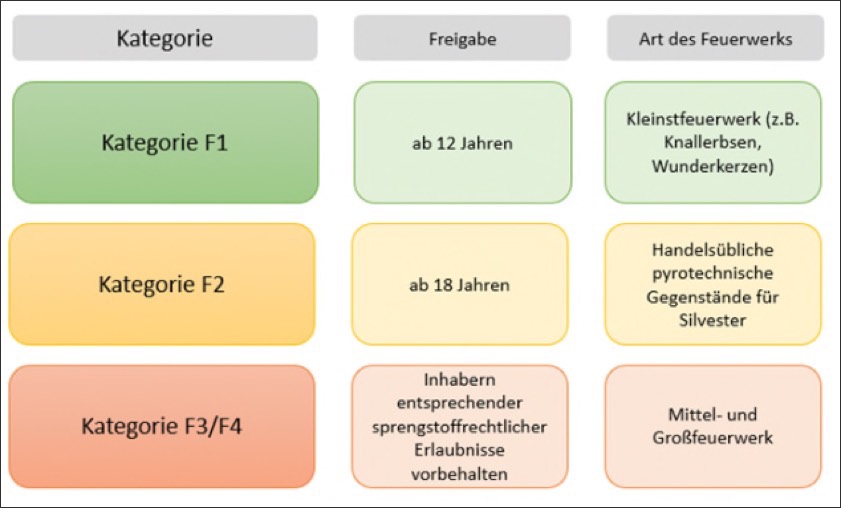 "Pyrotechnik der Kategorie 3 und 4 ist oftmals auf Märkten im benachbarten Ausland oder im Internet zu günstigen Konditionen frei erhältlich, in Deutschland jedoch nicht erlaubt", stellt das bayerische Landeskriminalamt klar. "Selbst eine vorhandene CE-Zertifizierung für Kategorie-3-Feuerwerk auf ausländischen pyrotechnischen Gegenständen schützt nicht vor Strafe", wird betont. Feuerwerk der Kategorie 3 sei zwar in vielen europäischen Ländern für Personen im Alter von über 21 Jahren frei verkäuflich, nicht jedoch in Deutschland. Eine Übersicht dazu bietet die Grafik am Ende dieses Beitrags.