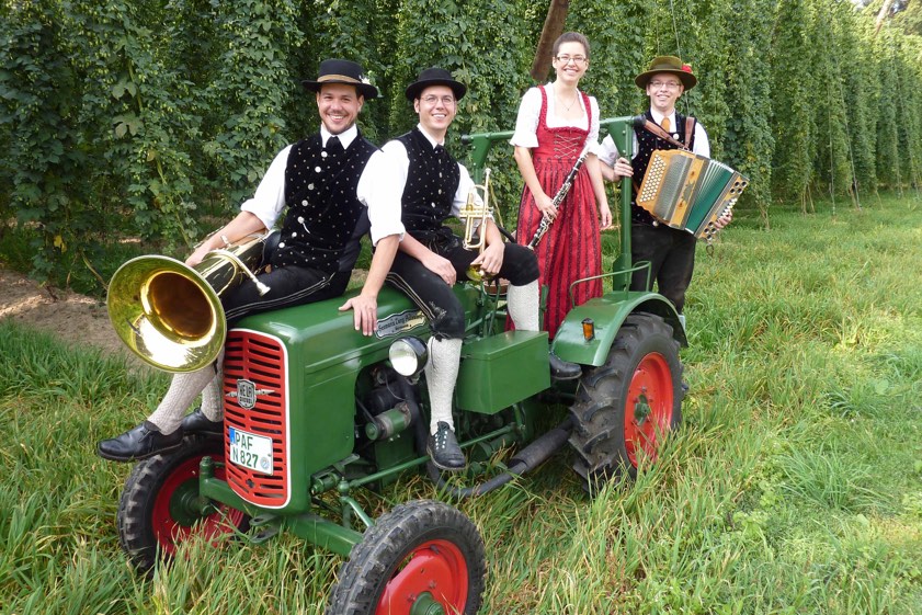Die "Hopfa-Moos-Musi", das sind vier junge Musikanten aus der Holledau und aus dem Donaumoos. Sie spielen vor allem regionale Musikstücke. Bei dem Volkstanz-Abend werden Walzer, Polka, Schottisch und überlieferte Volkstänze für jedermann zum Mittanzen gespielt, wurde vorab erklärt. Natürlich sei auch für Speis und Trank gesorgt. In der Pause wollen die Trachtler mit einem Schuhplattler-Auftritt für Kurzweil sorgen.