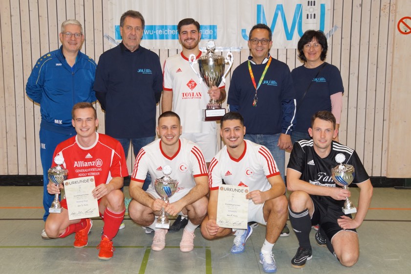 (ty) Am gestrigen Feiertag "Heilige Drei Könige" hat in Reichertshofen das Freizeit-Team "Istanbulls" bei der 32. Auflage des traditionellen JWU-Turniers im Hallenfußball seinen Titel aus dem Jahr 2020 verteidigt. Nach zweijähriger Corona-Pause gelang den Kickern mit einem klaren 4:1-Erfolg im Finale gegen das Team "Bauwong Karlskron" nach 2013 und 2020 der mittlerweile dritte Turnier-Sieg. Die "Istanbulls" wollen auch bei der nächsten Auflage im kommenden Jahr alles geben, um das Turnier zu gewinnen. Dann wären sie das erste Team seit 2001, das den beliebten Wanderpokal durch drei Turnier-Siege nacheinander behalten darf.