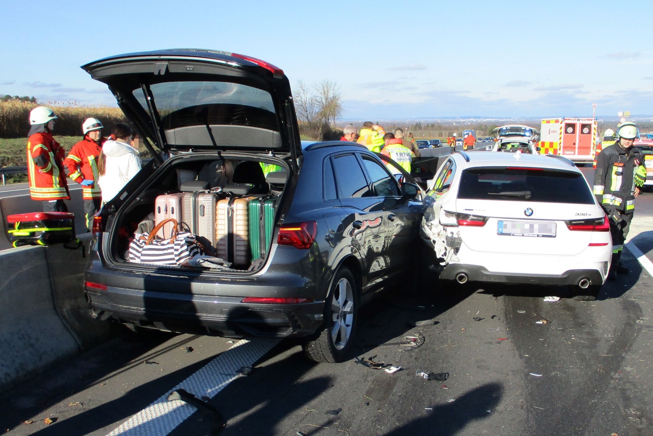 Unfall-Geschehen gegen 11.30 Uhr im dichten Reiseverkehr sorgte gestern für massive Behinderungen. Zahlreiche Einsatzkräfte vor Ort.
