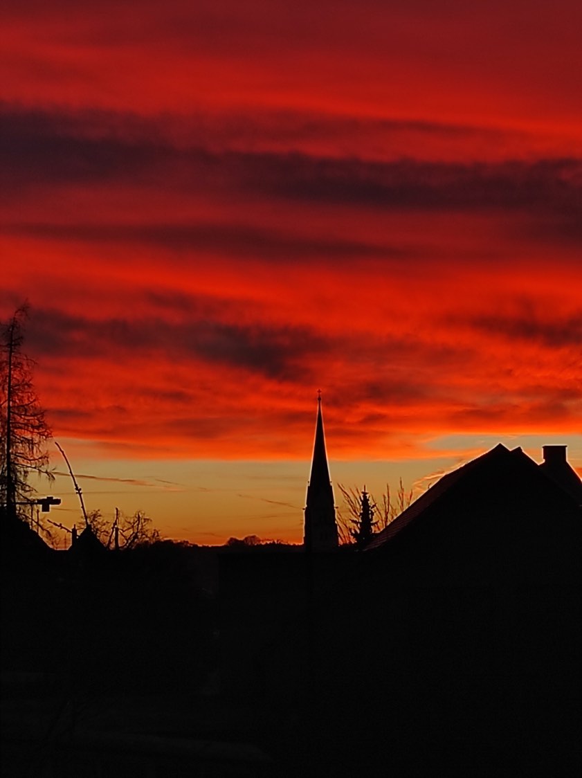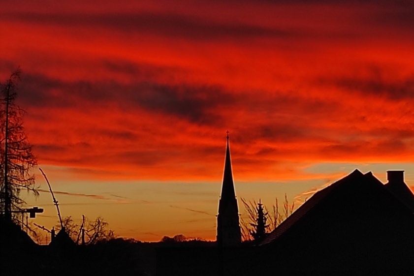 (ty) Und schon geht sie weiter, die Serie von beeindruckenden Fotos aus der Region, die uns unsere Leserinnen und Leser nach wie vor übermitteln. Das Motiv, das wir Ihnen am heutigen Sonntag zeigen können, hat uns Marita Findel aus dem Stadtgebiet von Pfaffenhofen zukommen lassen. "Heute früh war dieser feurige Sonnenaufgang von meinem Fenster aus zu sehen", berichtet sie. "Leider nur ein kurzes Schauspiel." Oben sehen sie einen Ausschnitt, unten das komplette Hochformat-Motiv.