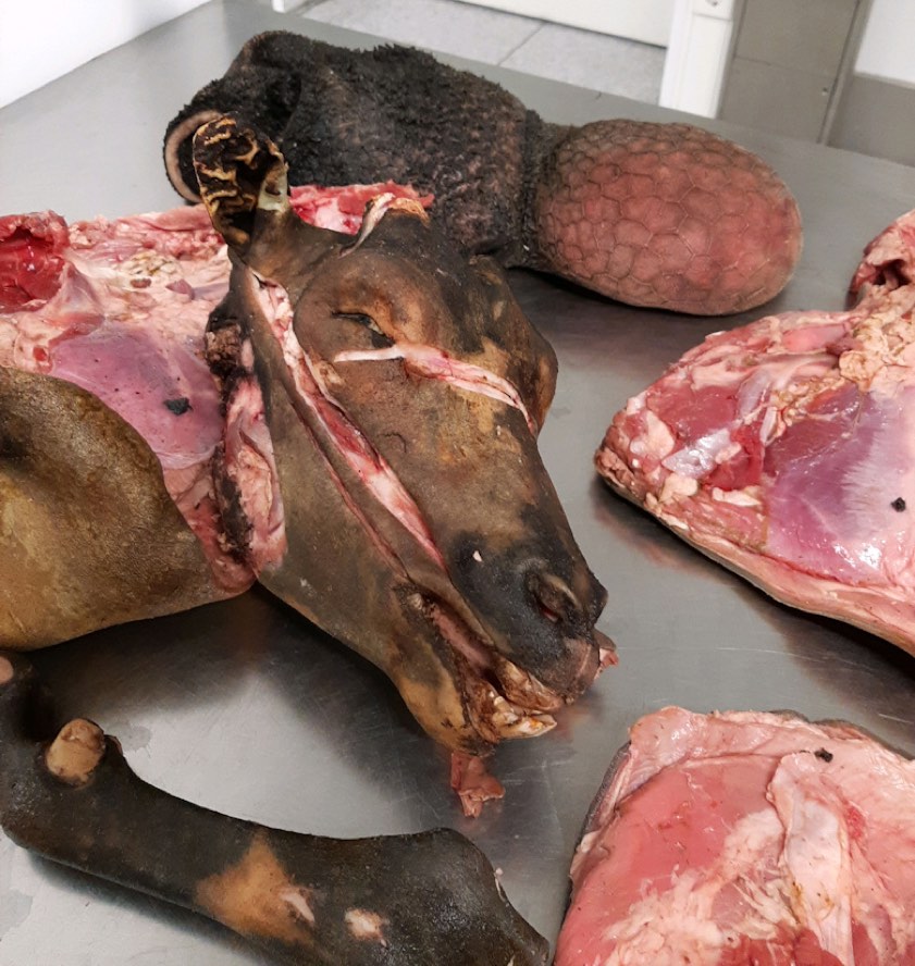 (ty) Der Fall wurde heute öffentlich gemacht: Im Rahmen der Gepäck-Kontrolle eines aus Kamerun kommenden Mannes haben Zöllner am Flughafen von München Anfang dieses Jahres eine schaurige Entdeckung gemacht: "Insgesamt 16 Kilogramm ungekühltes Fleisch einer Ziege, deren Schädel und auch ihr offen liegender Magen befanden sich im Koffer des 36-jährigen Reisenden", berichtet der Zoll. Das als Geschenk eingepackte Fleisch habe sich in einem Karton befunden.