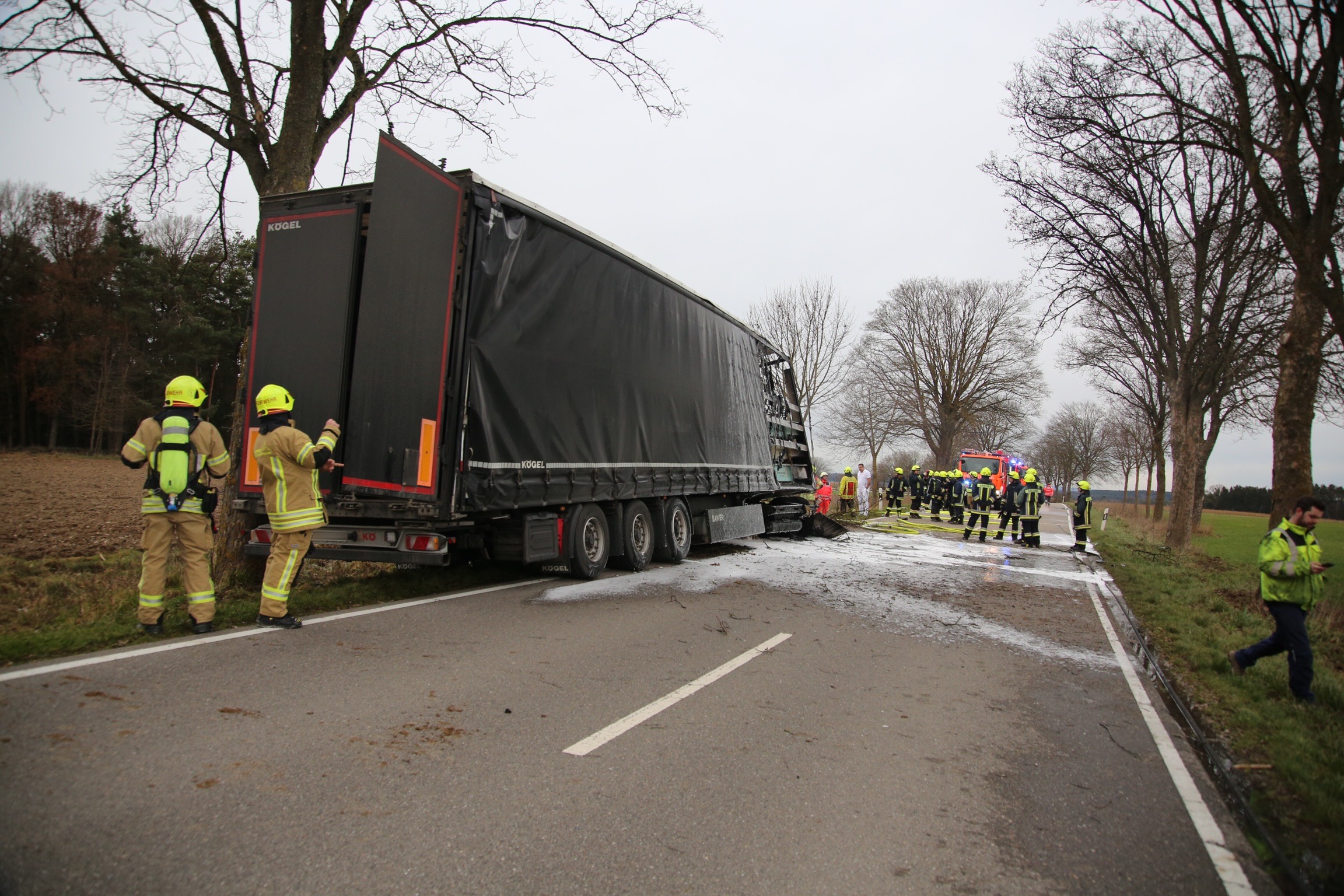 Die zuerst eintreffenden Streifenbeamten hatten nach eigenem Bekunden feststellen müssen, das ein Sattelzug, der in Richtung Schrobenhausen unterwegs war, in einer leichten Rechts-Kurve zunächst nach links von der Strecke abgekommen und dann frontal gegen einen massiven Baum geprallt war. "Das Führerhaus der Zugmaschine stand unmittelbar darauf bereits im Vollbrand, der Fahrer war in der Kabine eingeklemmt", hieß es im ersten Bericht der Polizeiinspektion aus Schrobenhausen.