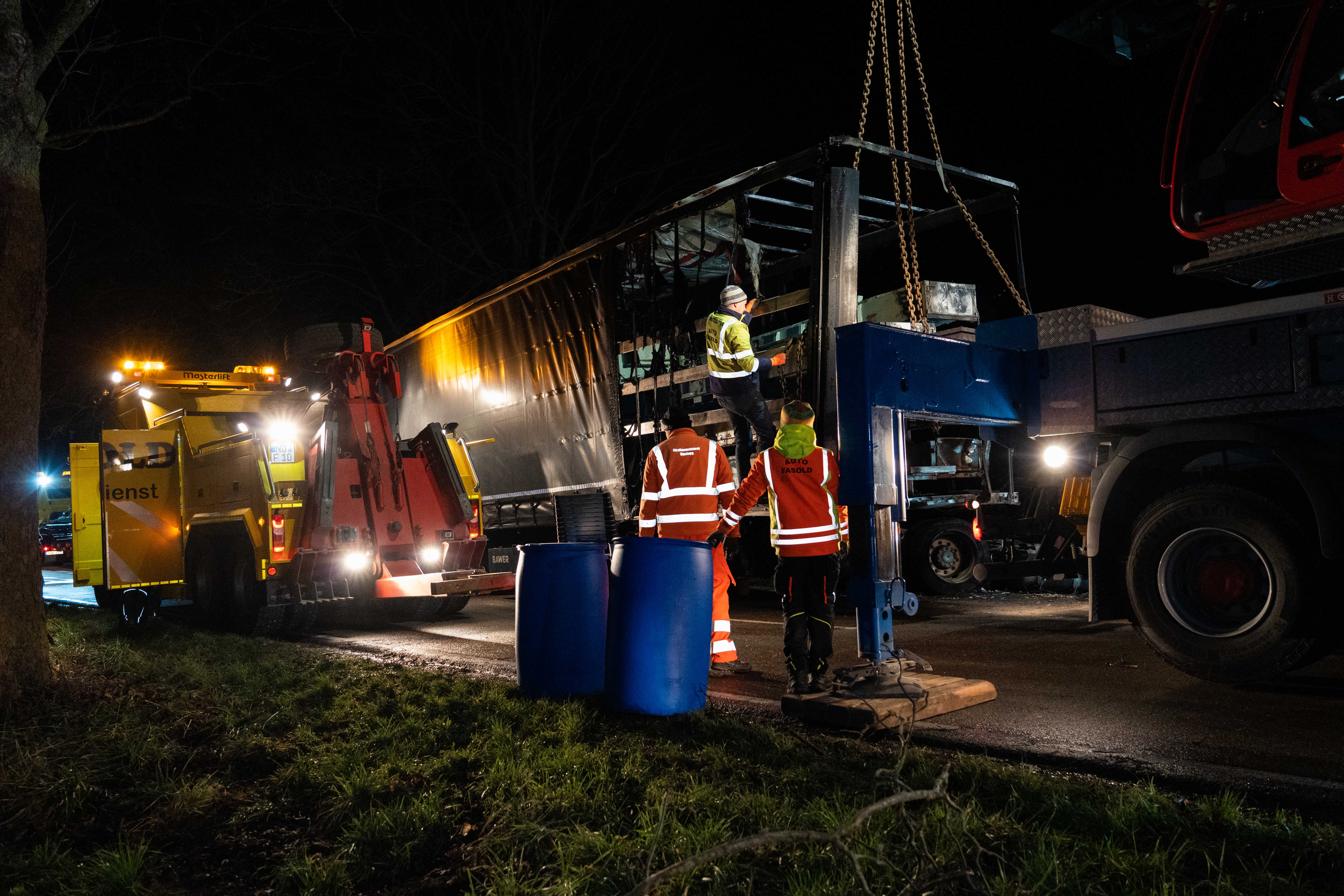 Rettungs-Versuche von unmittelbaren Zeugen des Unglücks sowie anschließend von den eingetroffenen Polizeibeamten seien erfolglos geblieben, wurde weiter erklärt. Der Lkw-Fahrer "verbrannte bis zur Unkenntlichkeit", meldete die Polizei. Hinweise zur Unfall-Ursache lagen am Montagabend noch nicht vor. Eine Fremdbeteiligung könne allerdings unter Berufung auf Zeugen-Aussagen ausgeschlossen werden, wurde in der Erstmeldung dargelegt. Außerdem wurde gemeldet, dass die Identität des ums Leben gekommenen Fahrers noch nicht zweifelsfrei geklärt sei.