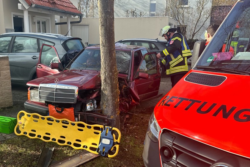 Die 66-Jährige sei mit ihrem Wagen dann nach rechts von der Fahrbahn abgekommen, frontal gegen einen Baum geprallt und anschließend mit der rechten Seite ihres Mercedes gegen das Heck eines in der dortigen Hofeinfahrt geparkten Pkw der Marke Seat gefahren. Die 66-Jährige habe bei dem Unglück leichte Verletzungen davongetragen. Nach Angaben der Berufsfeuerwehr aus Ingolstadt, die zusammen mit den Freiwilligen Feuerwehren aus Zuchering und Brunnenreuth im Einsatz war, war die Frau nach dem Unfall-Geschehen zunächst in ihrem Auto eingeschlossen.