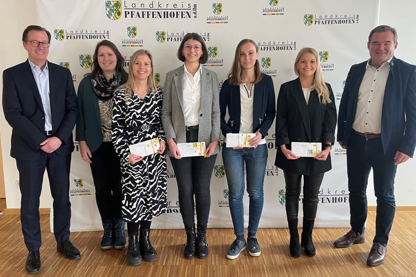(ty) Der Pfaffenhofener Landrat Albert Gürtner (FW) hat Anna-Maria Augustin, Katharina Kaindl, Fiona Weber und Sophia Wenger zur bestandenen Abschluss-Prüfung im Rahmen der Weiterbildung zur Verwaltungs-Fachwirtin gratuliert (Foto oben). "Es ist schön, wenn der ganze Aufwand und monatelange Fleiß zum Schluss auch mit guten Ergebnissen belohnt wird", so Gürtner zu den Erfolgen der Nachwuchskräfte an seiner Behörde.