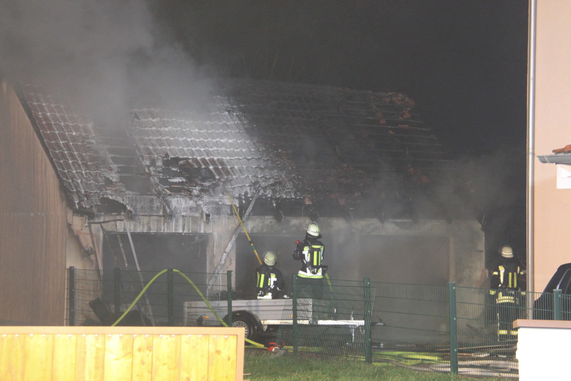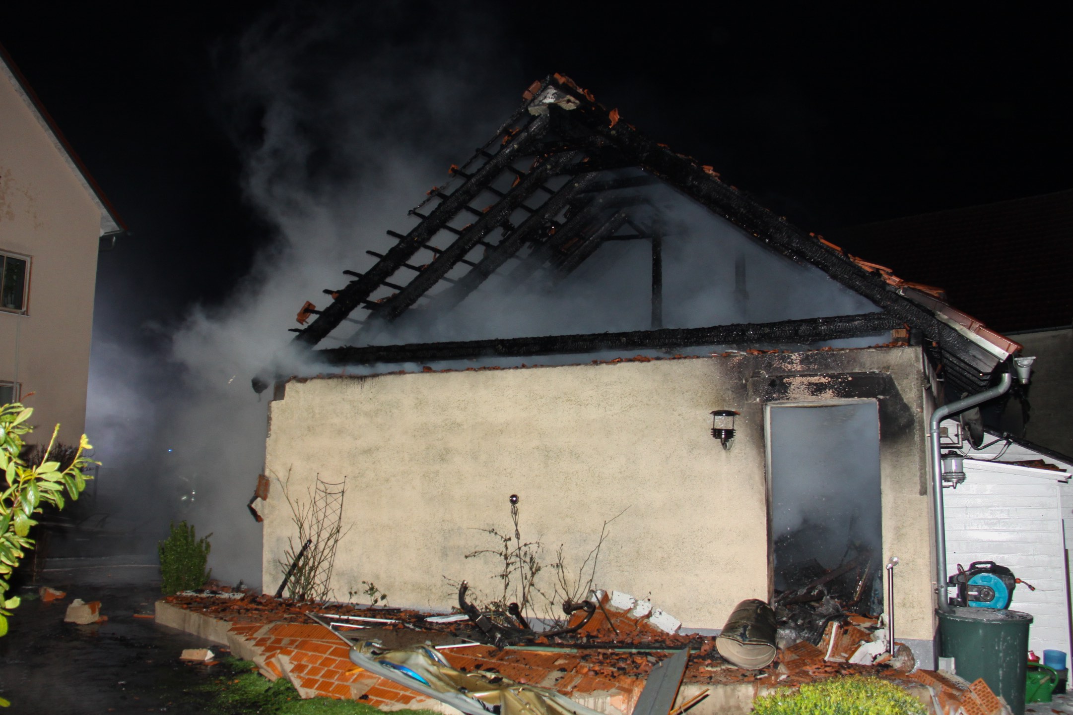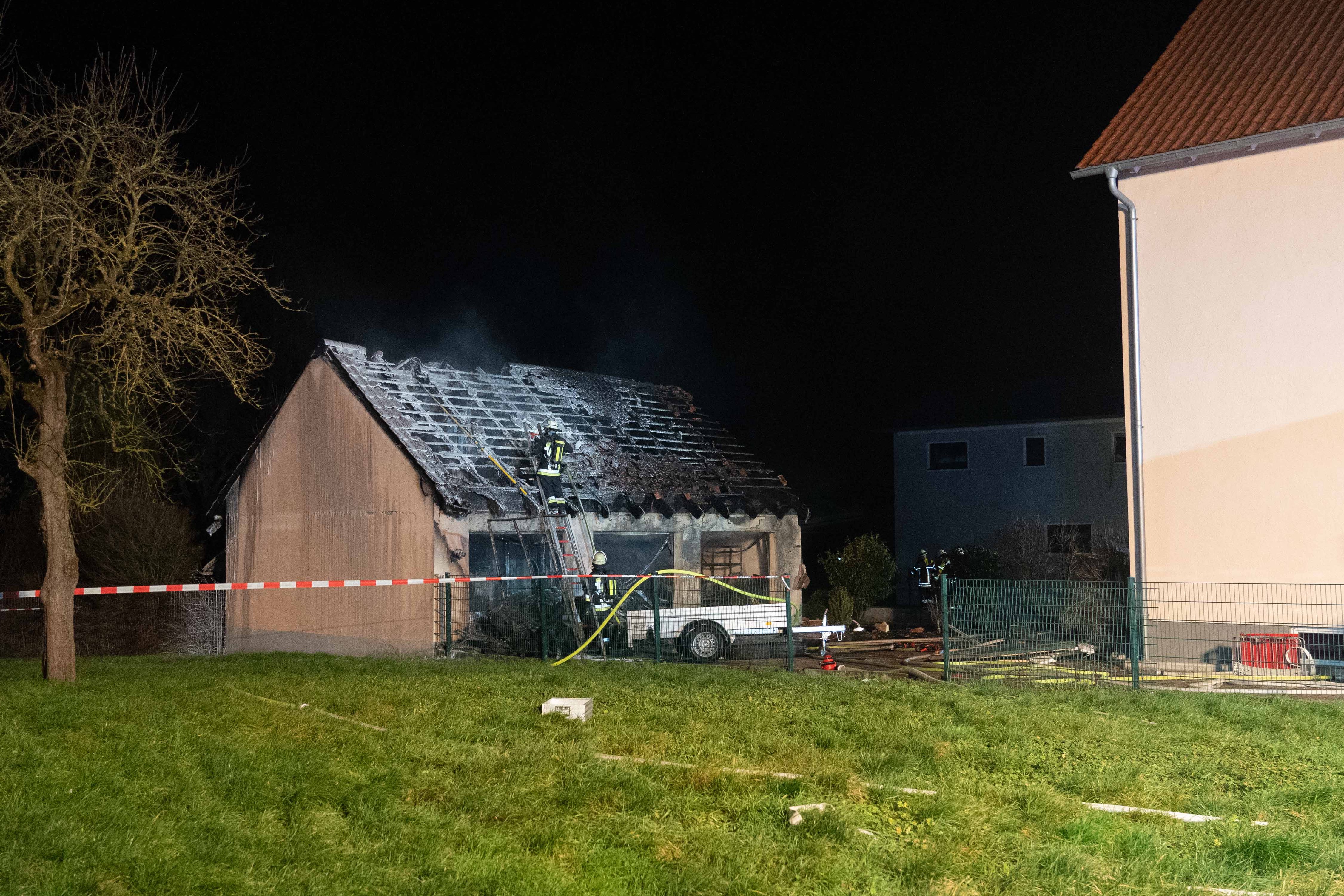 Nach Angaben der Polizei wurden neben dem Garagen-Komplex sowie den darin befindlichen Gerätschaften auch anliegende Wohnhäuser beschädigt. Alarmiert worden waren neben der Berufsfeuerwehr aus Ingolstadt auch die freiwilligen Feuerwehren aus Etting, Wettstetten und Ringsee sowie das Technische Hilfswerk (THW).