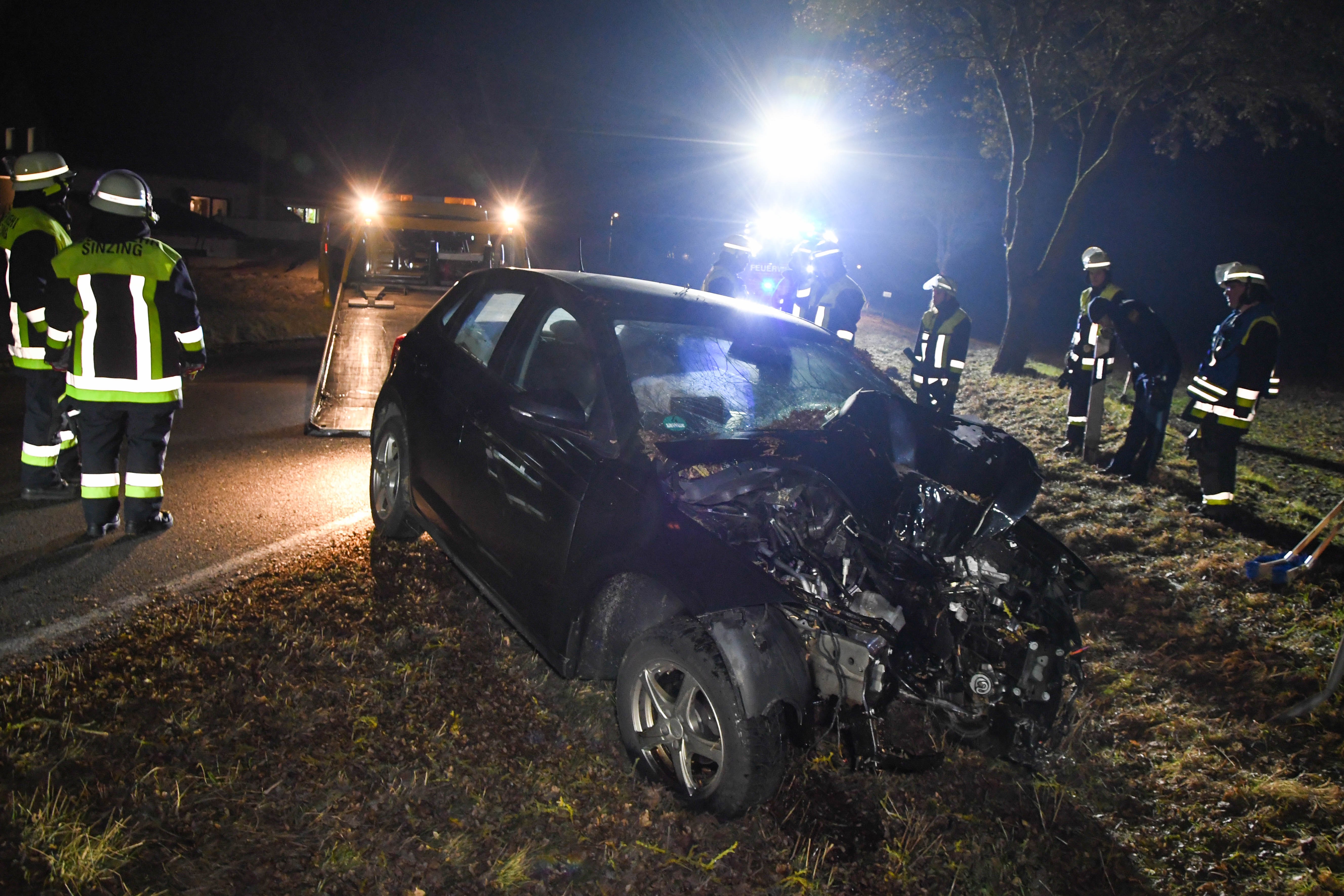 (ty) Im Gemeinde-Bereich von Sinzing im Landkreis Regensburg hat sich am gestrigen Abend ein heftiger Verkehrsunfall ereignet, bei dem eine junge Pkw-Lenkerin schwere Verletzungen erlitten hat. Das Unglück geschah auf der Staatsstraße 2394 zwischen Sinzing und dem Ortsteil Alling. Die 20-Jährige kam nach Angaben der Polizei aus bislang noch nicht bekannter Ursache mit ihrem Wagen zunächst von der Strecke ab und prallte dann frontal gegen einen Baum. An dem Pkw entstand augenscheinlich ein Totalschaden.