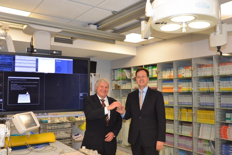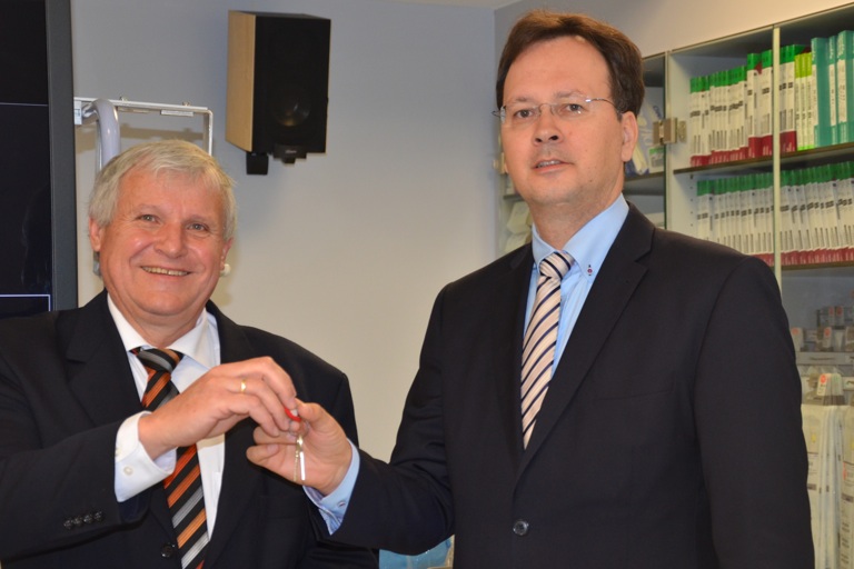 Hans Huber, der heute symbolisch schon mal den Schlüssel an seinen Nachfolger übergeben hat, wird noch zwei Monate (inklusive Urlaub) an der Seite von John arbeiten, sich dann aber nach eigenen Worten „konsequent zurückziehen“. Er sei aber freilich jederzeit ansprechbar. Unter seiner Regie seien die Erlöse der Klinik wieder verbessert worden, berichtete Huber, doch gestiegene Personalkosten hätten dieses Plus wieder aufgezehrt. Unterm Strich sei es gelungen, das Haus wieder in gutes Fahrwasser zu bringen, bilanzierte der Interims-Chef. Die Fallzahlen lägen nun wieder auf dem Niveau von 2012 – also auf dem Niveau vor dem Wirbel um Woedl und die Schlagzeilen um angeprangerte Missstände. „Ich gehe weitgehend beruhigt“, so Huber. Als Handlungsfelder für die Zukunft, sprich: für seinen Nachfolger Marcel John, sieht er die Erlössicherung, die Wartezeiten, das Entlass-Management und die OP-Organisation. Doch jetzt freut sich Huber dann erst einmal wieder auf seinen Ruhestand.