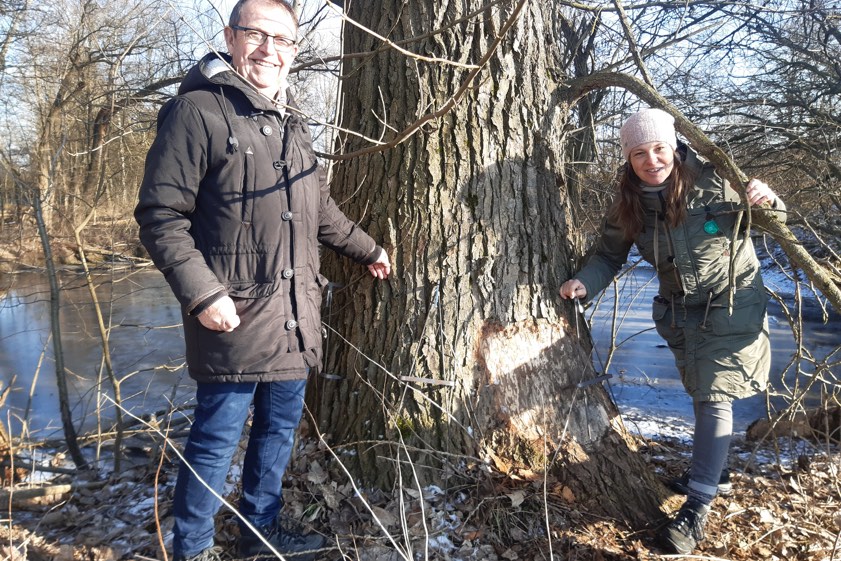 "Darunter sind auch viele ökologisch wertvolle Bäume, die etwa Nistplätze für Vögel, Fledermäuse, Eichhörnchen und Insekten bieten", ergänzt Josef Schweigard. Durch die noch laufenden Hochwasserschutz-Maßnahmen dränge der Biber immer weiter in Gebiete mit Baumbestand vor, die bislang noch nicht betroffen gewesen seien. Daher habe sich die Ortsgruppe entschieden, gemeinsam mit dem Wasserwirtschaftsamt gezielt einzelne Bäume auszuwählen und einen technischen Schutz anzubringen. "Der Biber wählt nicht aus, welche Bäume er als nächstes fällt, ob diese landschaftlich oder ökologisch wertvoll sind, das müssen wir übernehmen", verdeutlichen die Naturschützer.