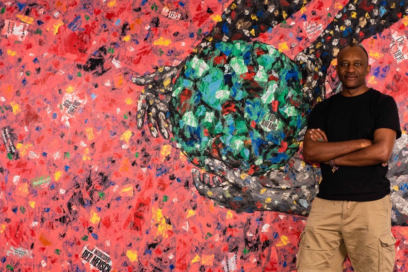 Emeka Udemba wurde 1968 in Enugu (Nigeria) geboren und studierte Kunst an der Universität von Lagos. Als global vernetzter Künstler lebt und arbeitet er in Freiburg und Lagos, kennt viele Facetten des kulturellen sowie sozialen Engagements in Süd und Nord. Von der Biennale in Dakar bis zur Documenta in Kassel hat er an Ausstellungen weltweit teilgenommen und zeigt seine Werke auf allen Kontinenten. Mit seiner Kunst verbindet Udemba verschiedene Medien und nutzt die Überschneidung von Bildern und Strukturen als Mittel. Er versucht damit,einen tieferen Einblick in die Art und Weise zu gewinnen, wie Menschen miteinander kommunizieren, wie sie Identität und Kultur formulieren – und wie diese Elemente das kollektives Bewusstsein beeinflussen.