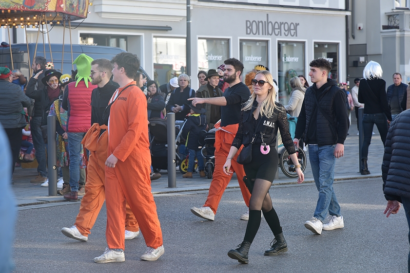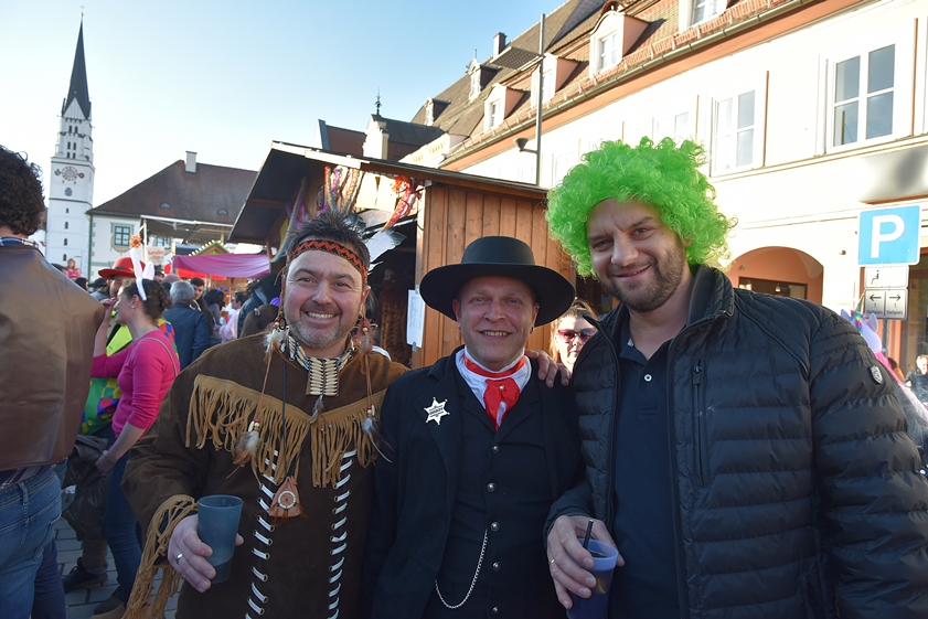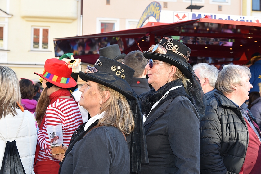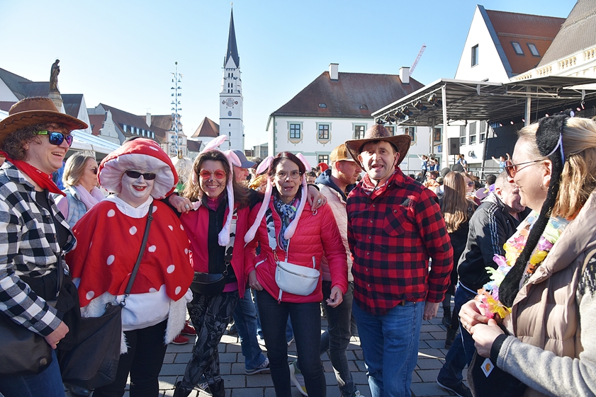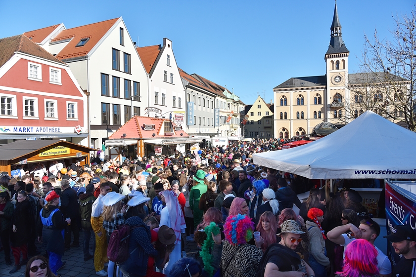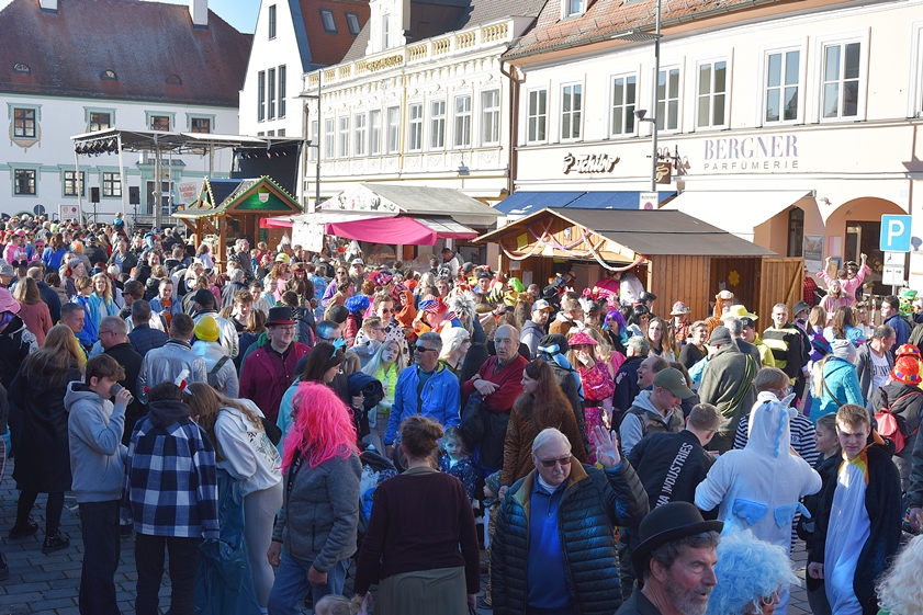 (ty) Nach zwei Jahren corona-bedingter Pause haben heute zum Faschings-Dienstag wieder traditionell die Maschkerer die Innenstadt von Pfaffenhofen in Beschlag genommen. Sie schmissen sich in die verschiedensten Kostüme und bevölkerten die City. Auf der Bühne vor dem Rathaus sowie auf einer weiteren Bühne beim Marienbrunnen wurde ein umfangreiches Show-Programm geboten, zahlreiche Prinzen-Garden und Tanz-Gruppen aus der Region traten auf. Dazwischen und danach gab es Party-Musik. Das offizielle Spektakel auf dem Hauptplatz dauerte von 12.30 bis 18.30 Uhr – aber Schluss war dann freilich noch lange nicht. Wir haben zahlreiche Impressionen eingefangen; nachfolgend sehen Sie eine umfangreiche Foto-Galerie.