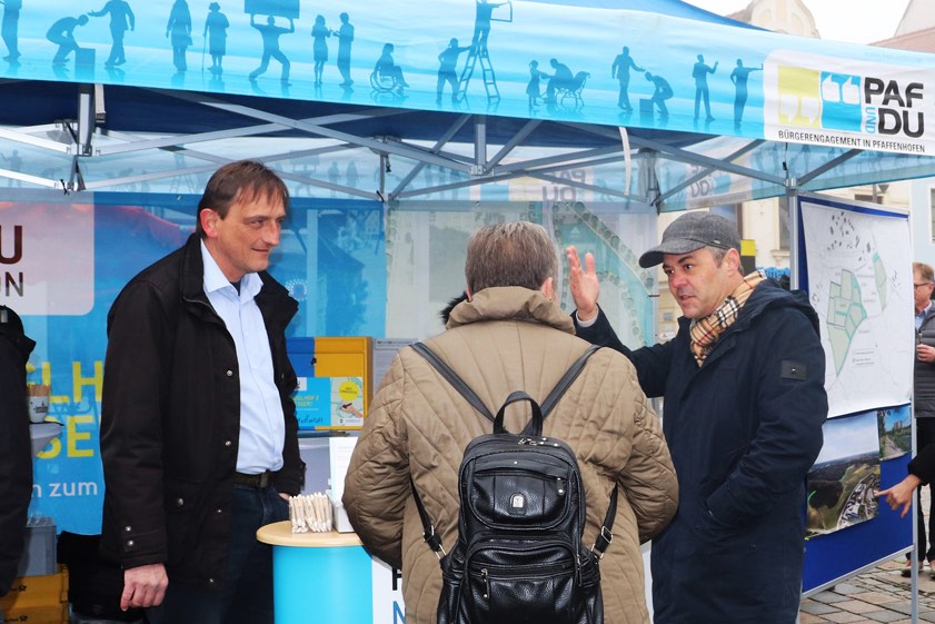 Stände auf dem Hauptplatz, Exkursion zur Ausgleichs-Fläche, Info-Material für die Einheimischen. Am 2. April finden dann zwei Bürgerentscheide statt.