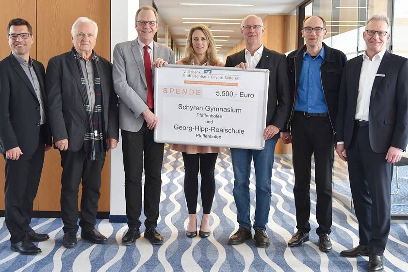 Stiftung der Volksbank-Raiffeisenbank Bayern-Mitte fördert Projekte und Aktionen: 5500 Euro für Georg-Hipp-Realschule und Schyren-Gymnasium.