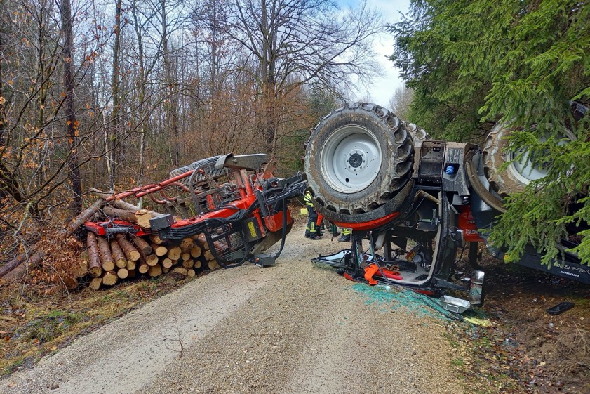 (ty) Ein ebenso ungewöhnlicher wie heftiger Verkehrsunfall hat sich am gestrigen Donnerstag zur Mittagszeit im Gemeinde-Bereich von Painten im Landkreis Kelheim ereignet. Gegen 12.15 Uhr waren die Rettungskräfte zu einem Forstweg zwischen Painten und Haugenried gerufen worden. Dort waren nach Angaben der örtlich zuständigen Polizeiinspektion aus Kelheim ein Traktor sowie der angehängte Holzrücke-Wagen umgekippt. Der Fahrer des Gespanns, ein 23-Jähriger aus dem Landkreis Regensburg, hatte offenbar noch Glück im Unglück.