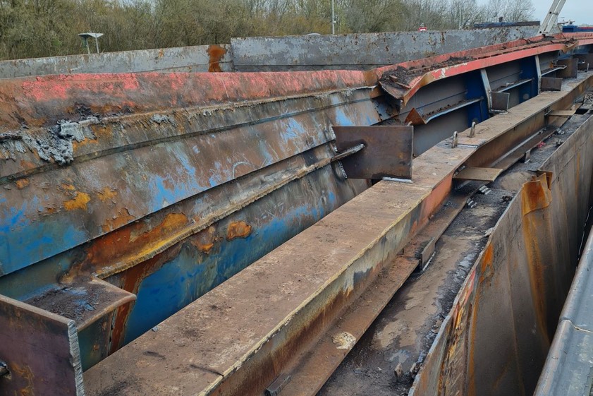 In den vergangenen Tagen seien "ohne Unterbrechung" insgesamt 26 Tonnen Stahl verschweißt worden, "um unter anderem den Knick-Bereich in Schiffsmitte durch 20 Meter lange Stahlträger zu verstärken und die teilweise sehr großen gerissenen Stellen mit Blechen abzudichten". Nach der Begutachtung und der Freigabe für eine einmalige Fahrt zu einer Schiffswerft nach Ungarn durch die sachverständige Schiffs-Untersuchungs-Kommission wurde nach Angaben des WSA am Dienstagabend der Wasser-Pegel in der zuvor komplett trocken gelegte Schleusen-Kammer zunächst vorsichtig auf knapp zwei Meter angehoben, "um einen Schwimmversuch des havarierten Gütermotorschiffs durchzuführen".