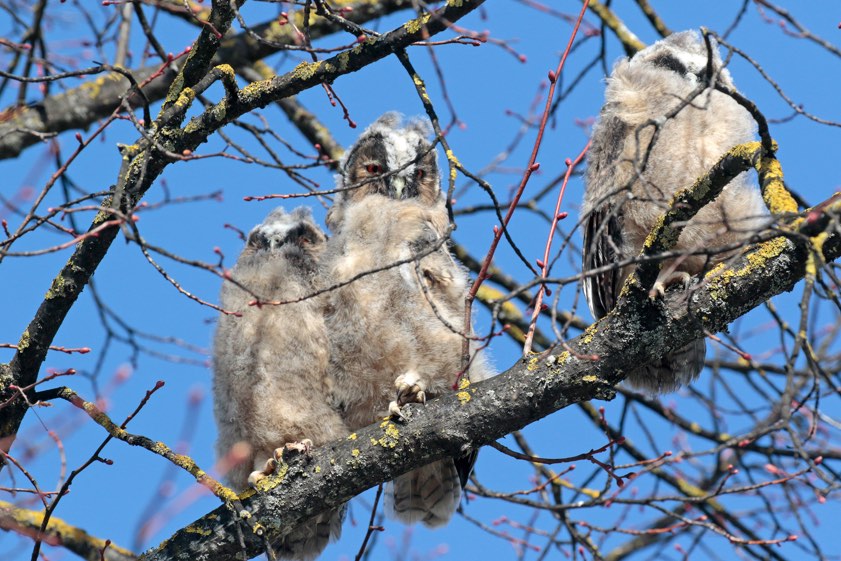 Am Münchner Airport lebt in einem Baum unweit des Besucher-Hügels eine Familie von Waldohr-Eulen mit fünf Jungvögeln.