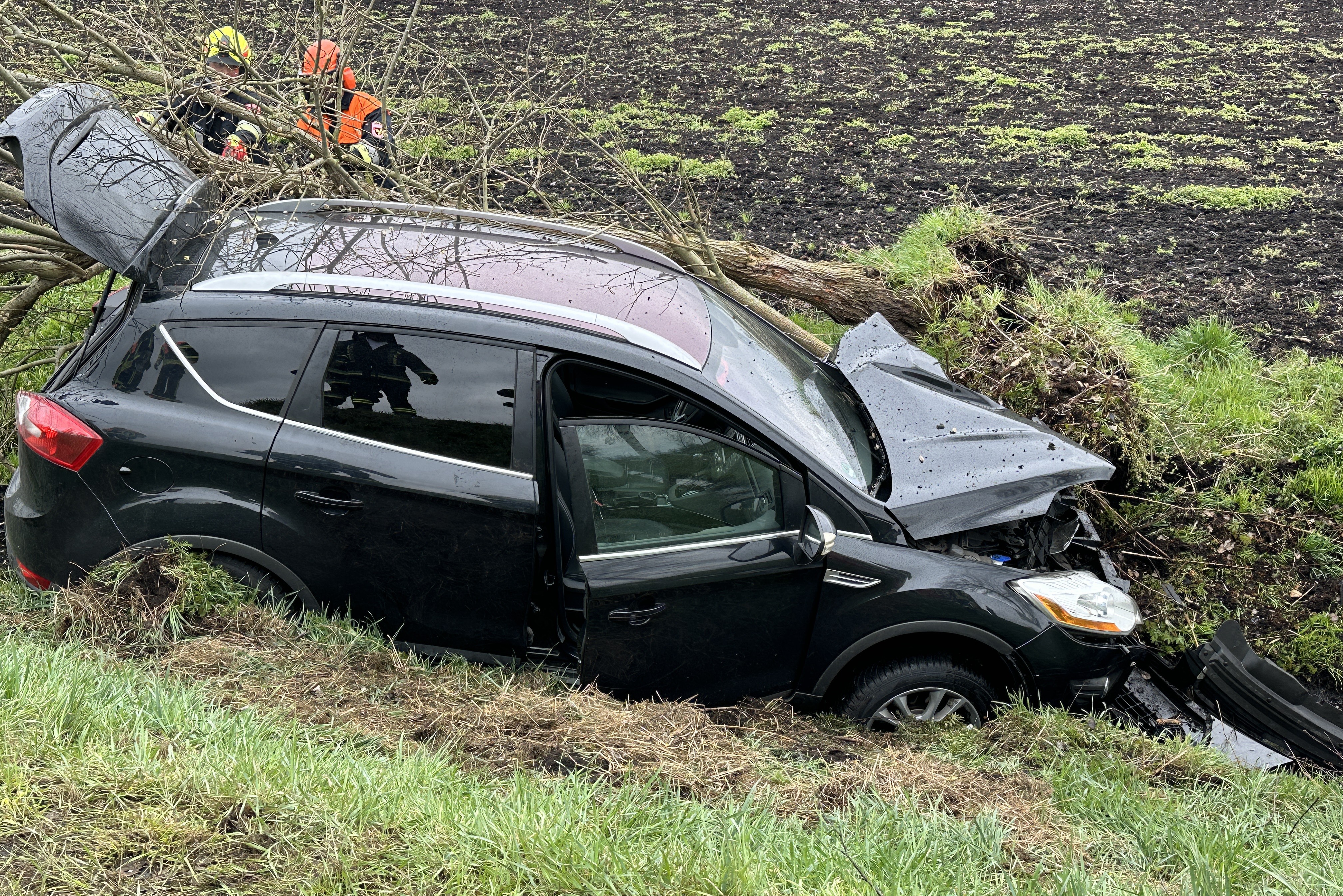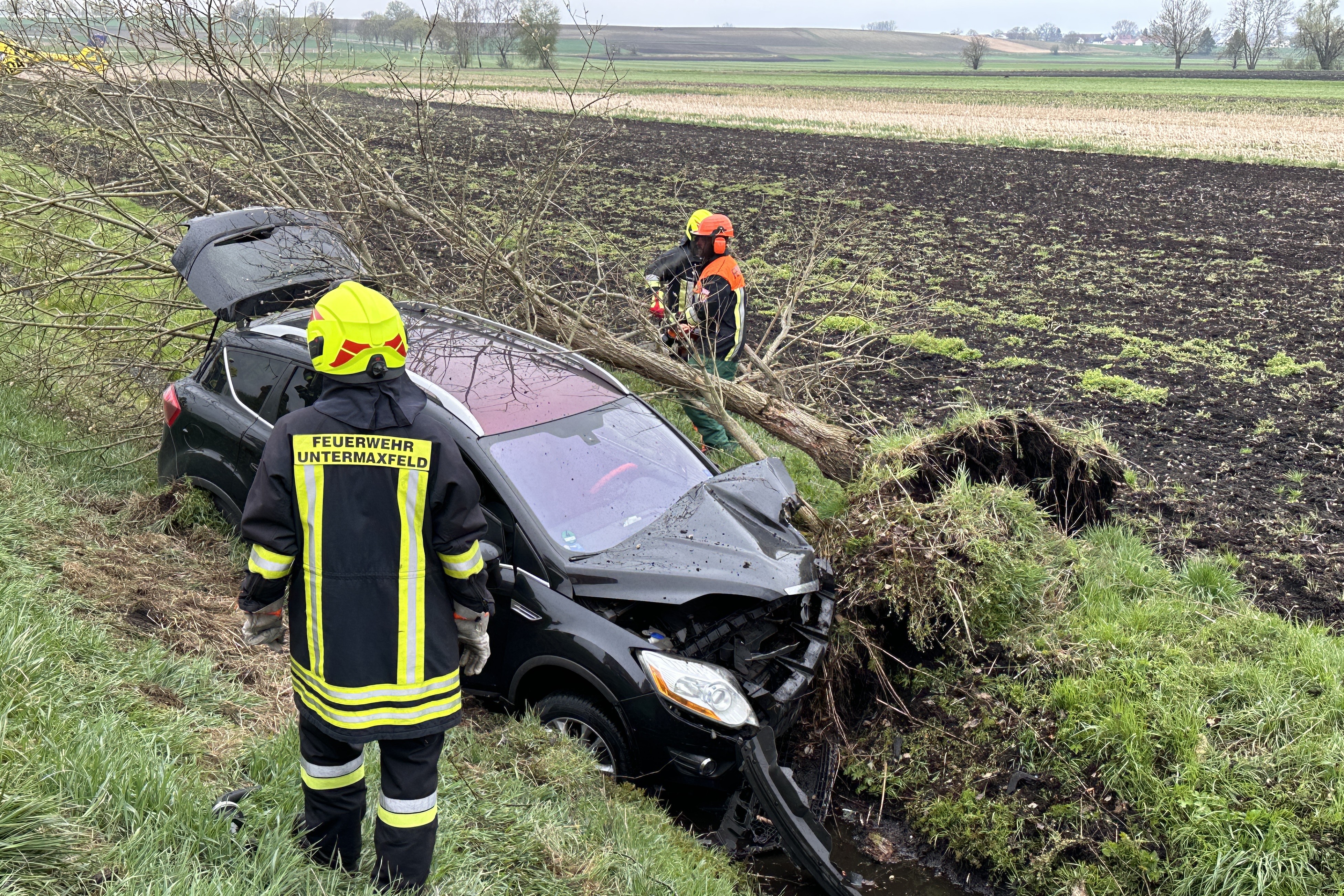 Der an dem Pkw entstandene Sachschaden wurde von den Streifenbeamten auf 10 000 Euro geschätzt. Der gerammte Baum sei durch die Kollision ramponiert worden; er habe von den Feuerwehrleuten gefällt werden müssen. Der Flurschaden wurde auf 150 Euro beziffert. Das Auto habe mit Hilfe eines Krans geborgen werden müssen, ehe es weggebracht werden konnte. Neben der Polizei und den Rettungskräften waren Feuerwehrleute aus Grasheim, Berg im Gau und Untermaxfeld sowie die Kreisbrandinspektion vor Ort.