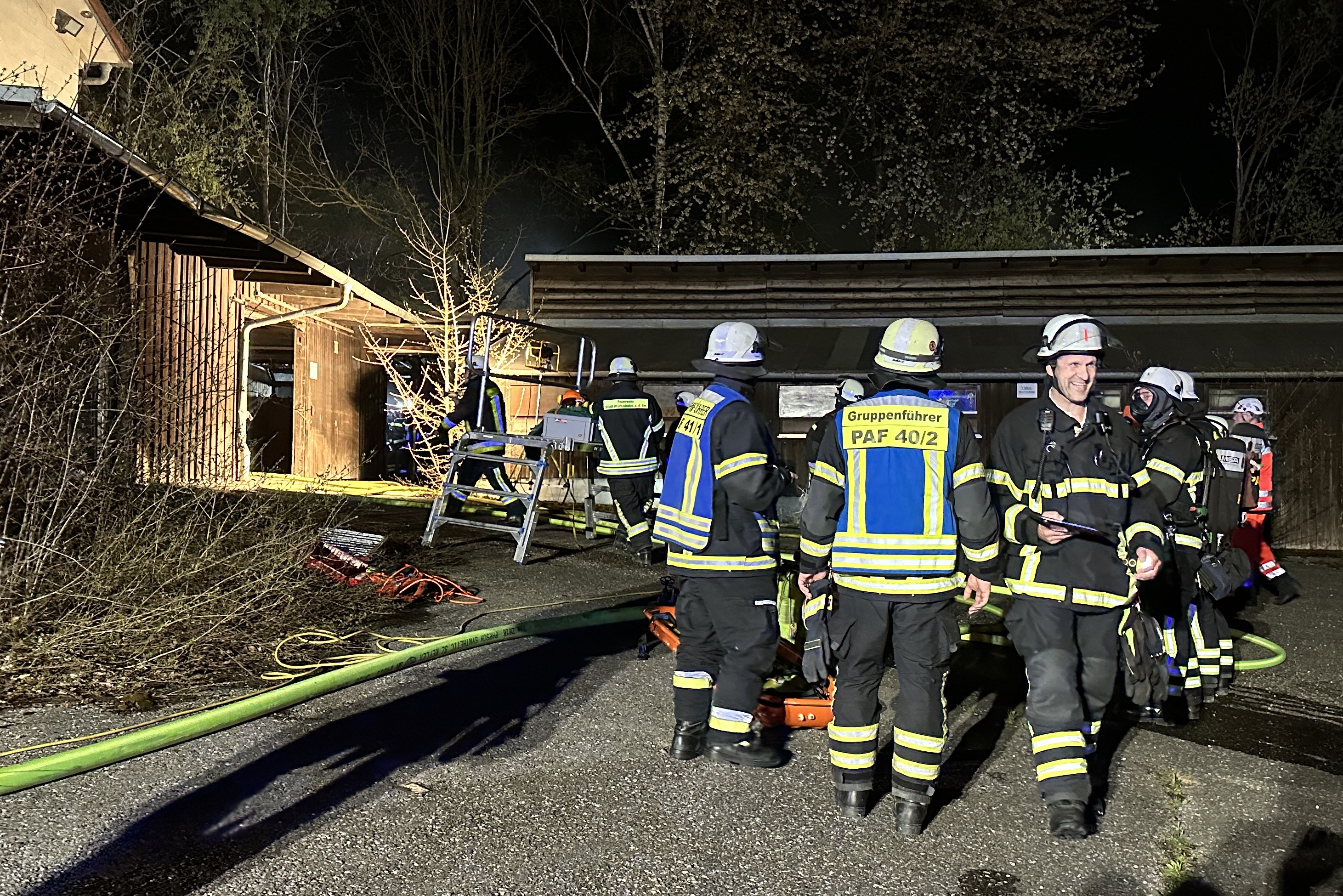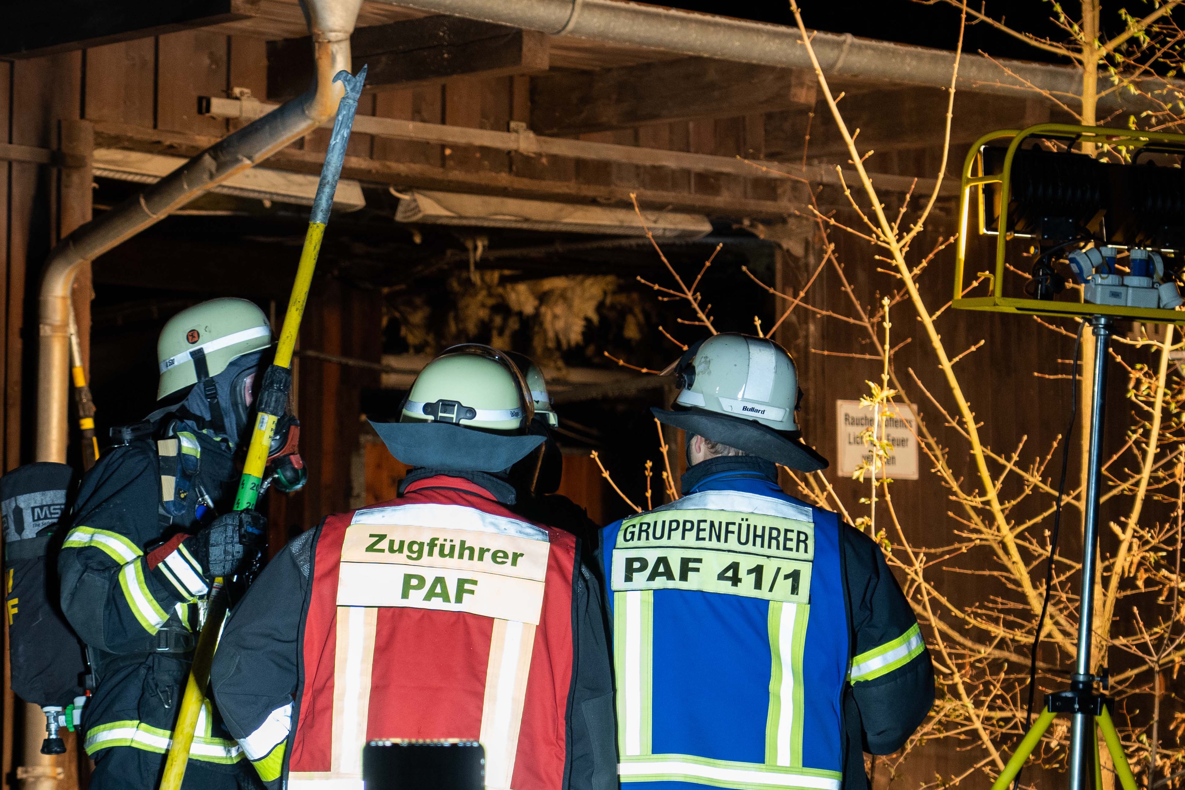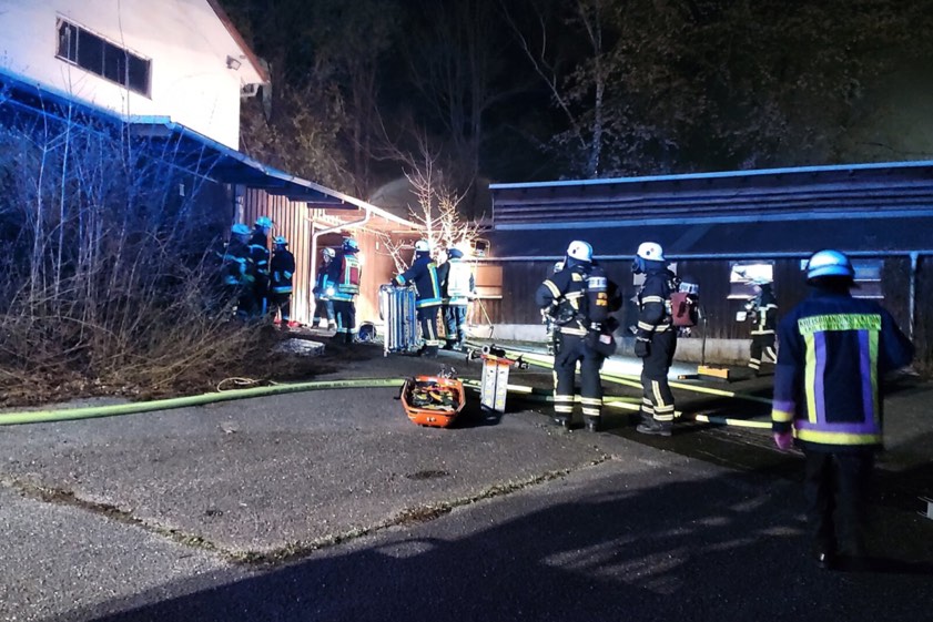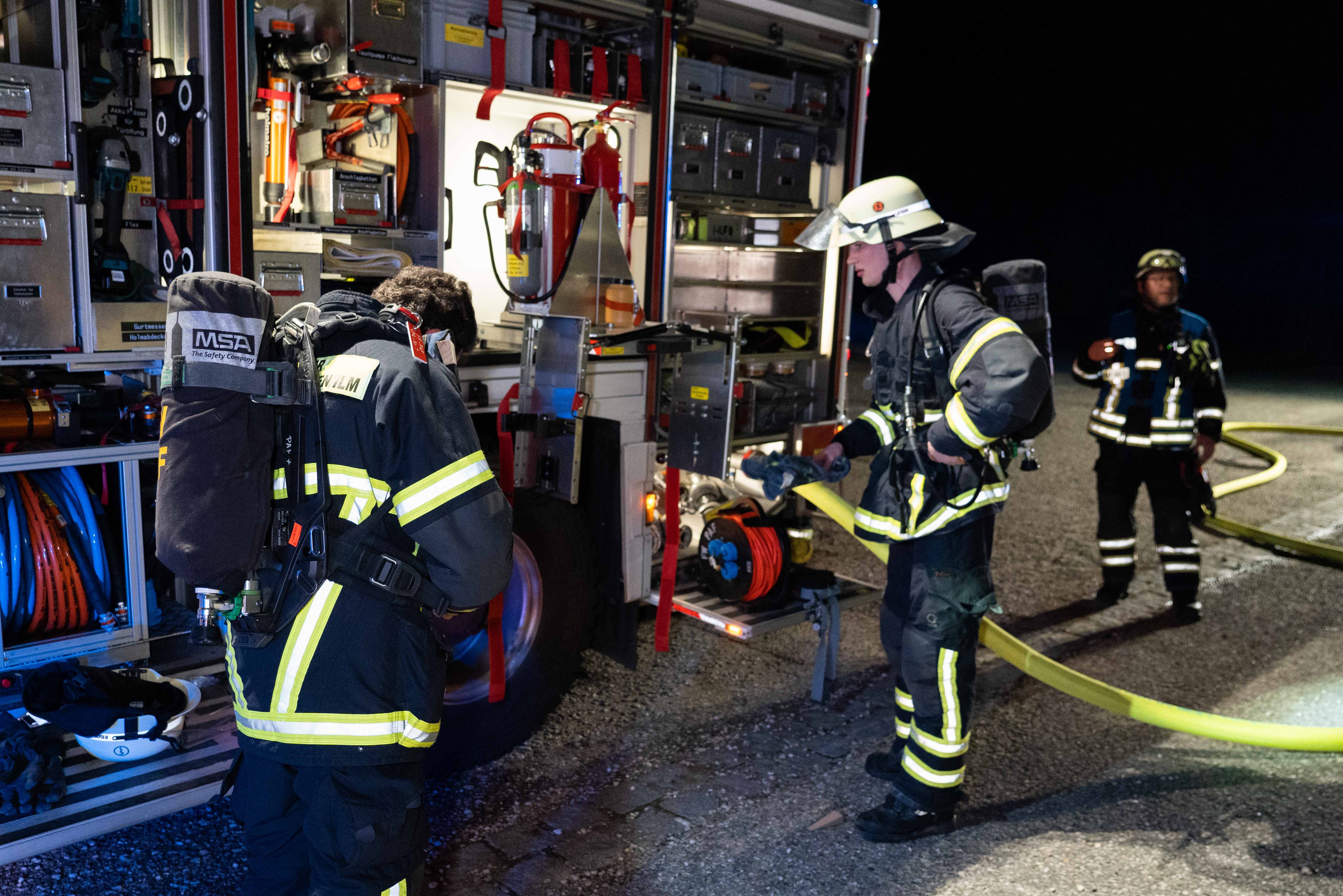 Eine Ausbreitung des Feuers "konnte durch einen Innen- sowie Außenangriff von zwei Seiten mit insgesamt drei C-Rohren verhindert werden", schildert die Feuerwehr. "Im weiteren Verlauf des Einsatzes musste ein Teil der Dachkonstruktion geöffnet werden, um versteckte Glutnester zu finden und diese Ablöschen zu können." Die Kreisstadt-Feuerwehr war nach eigenen Angaben mit 56 Personen und neun Fahrzeugen sowie einem Abroll-Rehälter für rund drei Stunden im Einsatz. Insgesamt seien 18 Feuerwehrleute unter Atemschutz für die Lösch- und Nachlösch-Maßnahmen im Einsatz gewesen. Außerdem waren von Seiten der Feuerwehr die Kreisbrandinspektion und die Unterstützungs-Gruppe "Örtliche Einsatz-Leitung" (UG ÖEL) angerückt.