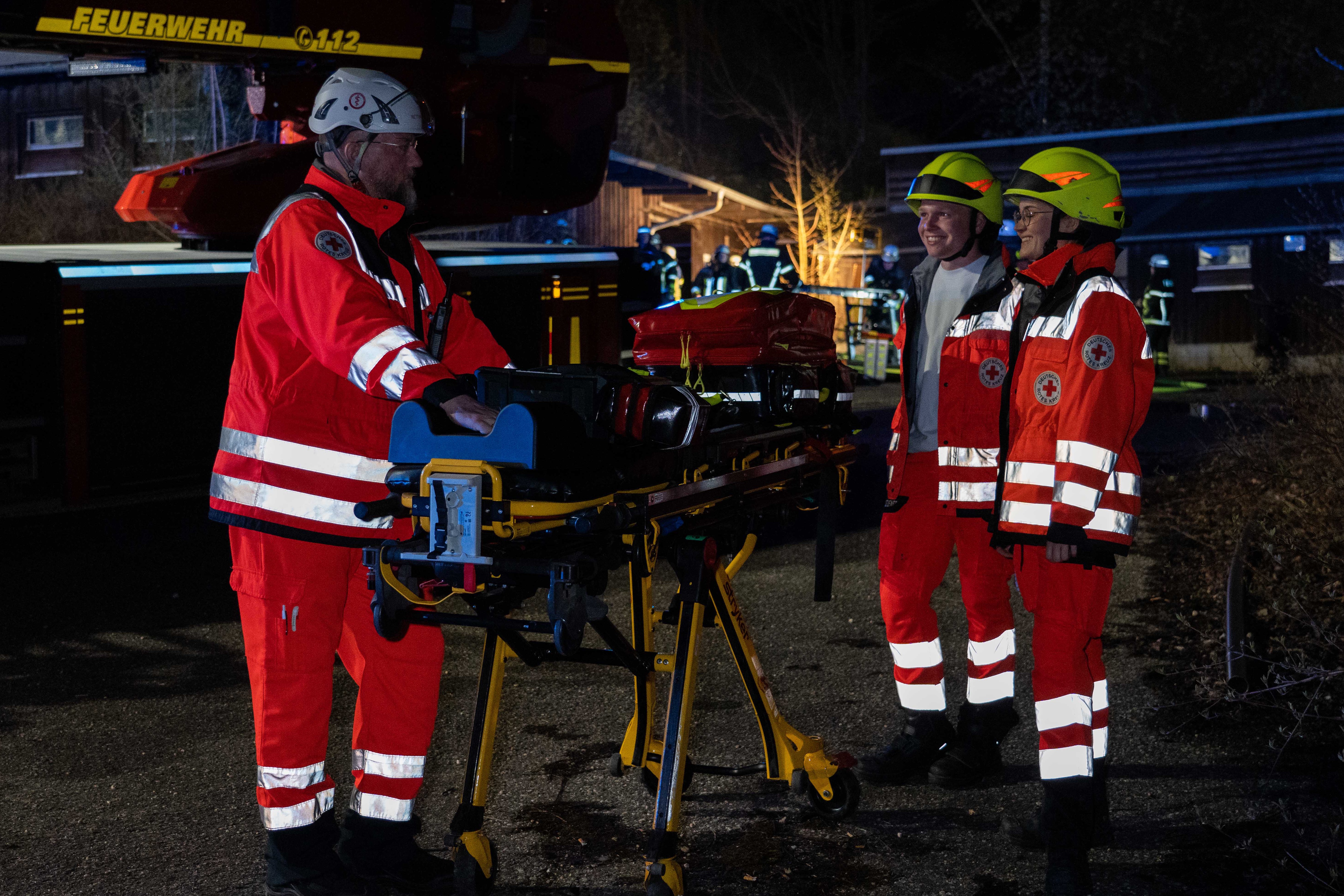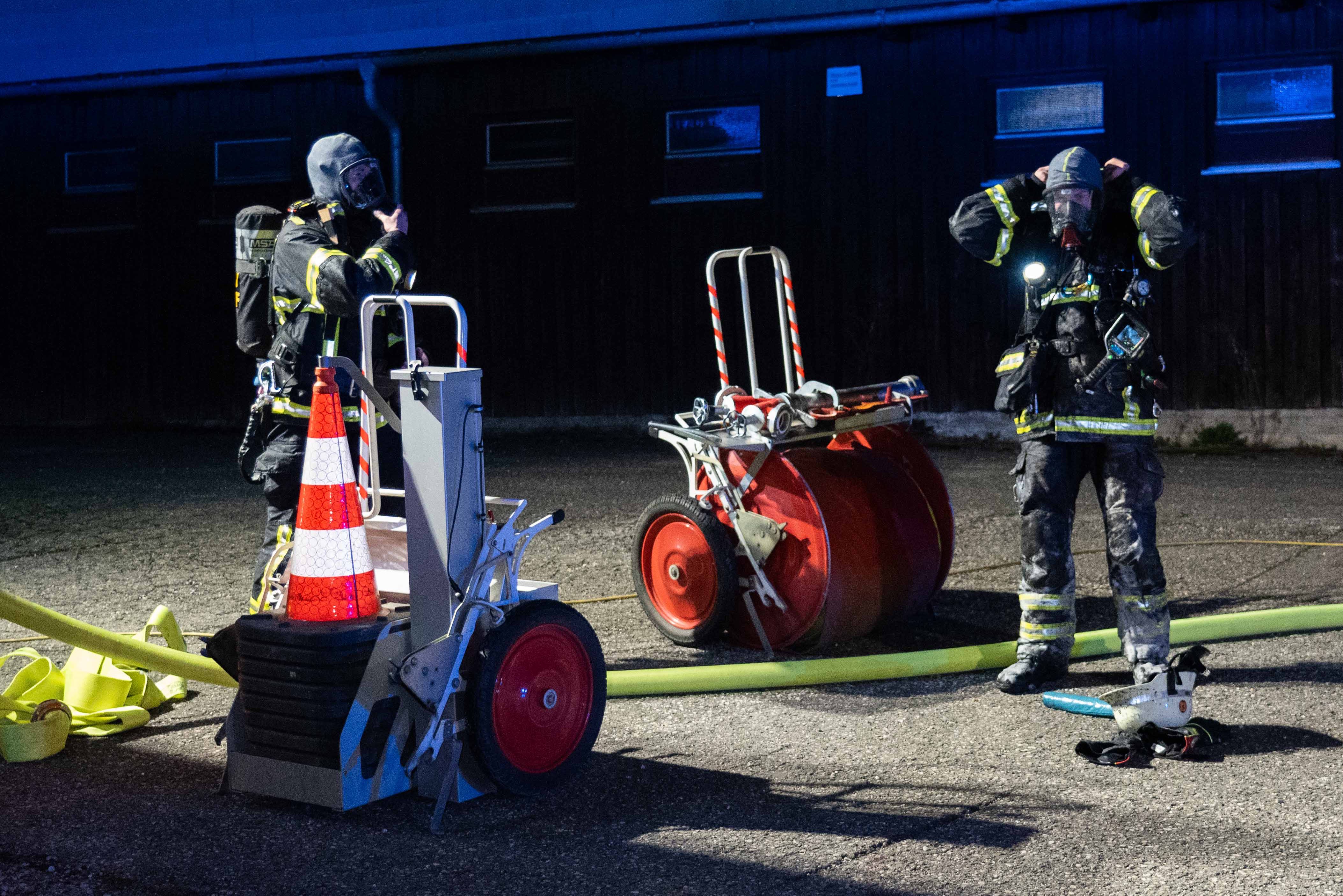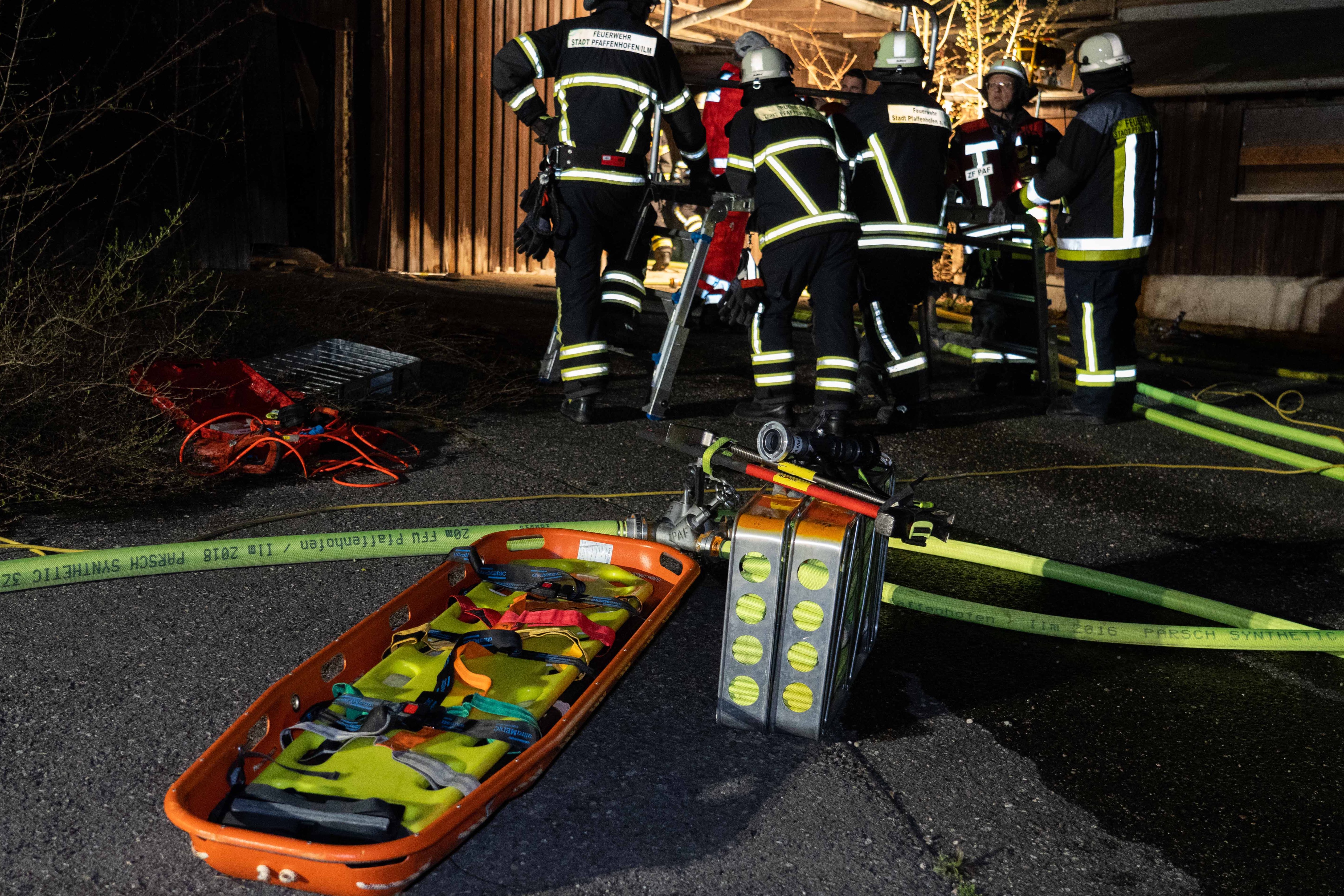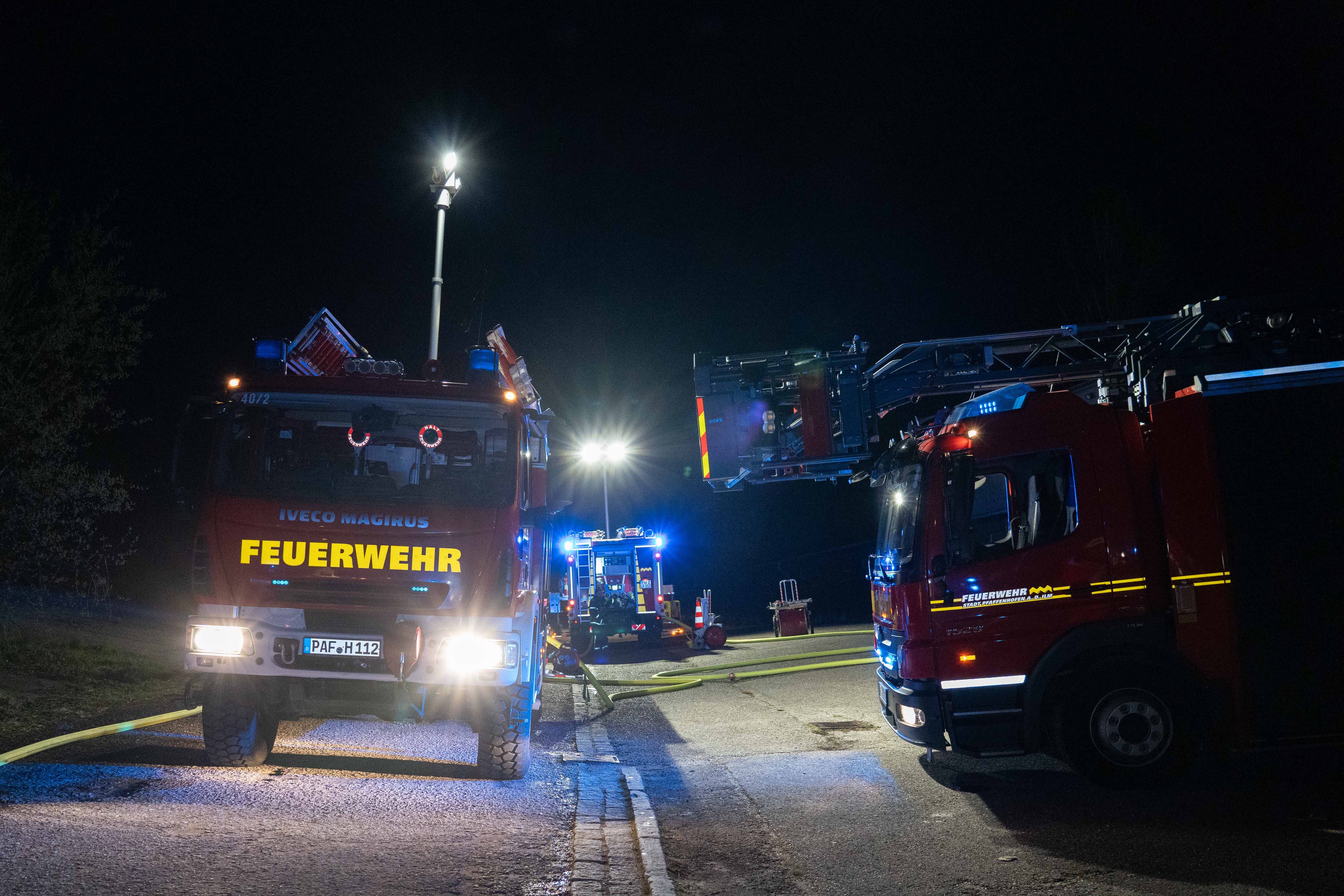Eine Ausbreitung des Feuers "konnte durch einen Innen- sowie Außenangriff von zwei Seiten mit insgesamt drei C-Rohren verhindert werden", schildert die Feuerwehr. "Im weiteren Verlauf des Einsatzes musste ein Teil der Dachkonstruktion geöffnet werden, um versteckte Glutnester zu finden und diese Ablöschen zu können." Die Kreisstadt-Feuerwehr war nach eigenen Angaben mit 56 Personen und neun Fahrzeugen sowie einem Abroll-Rehälter für rund drei Stunden im Einsatz. Insgesamt seien 18 Feuerwehrleute unter Atemschutz für die Lösch- und Nachlösch-Maßnahmen im Einsatz gewesen. Außerdem waren von Seiten der Feuerwehr die Kreisbrandinspektion und die Unterstützungs-Gruppe "Örtliche Einsatz-Leitung" (UG ÖEL) angerückt.