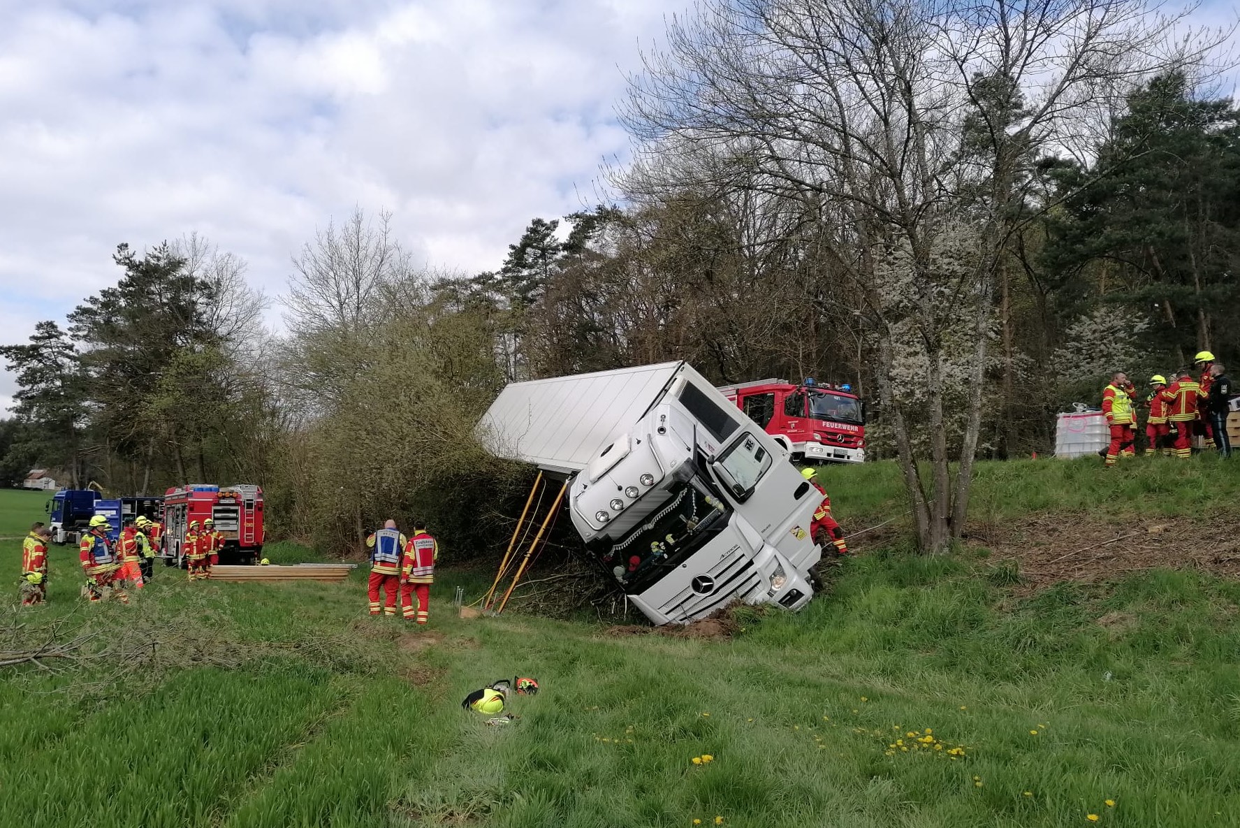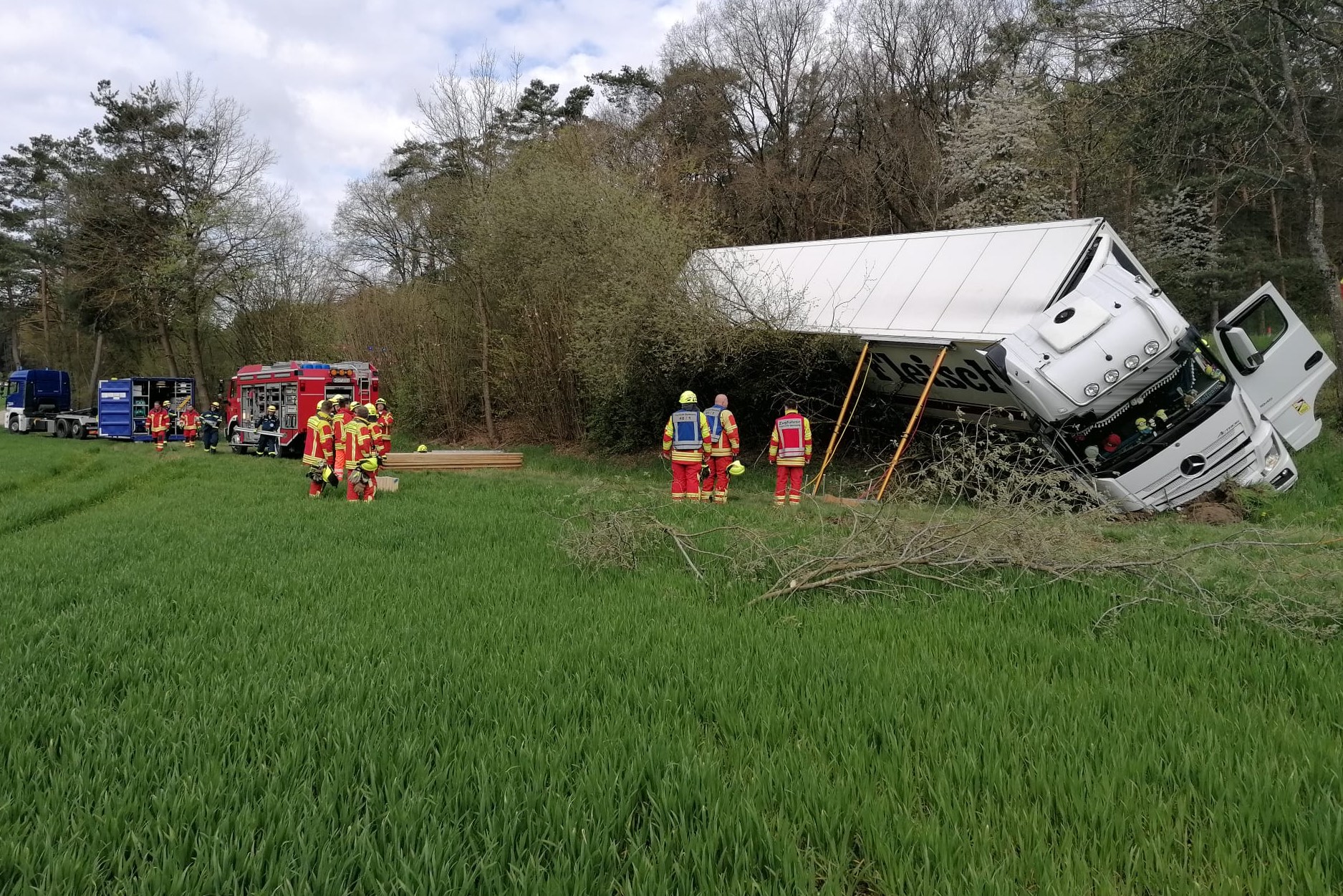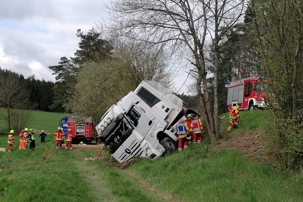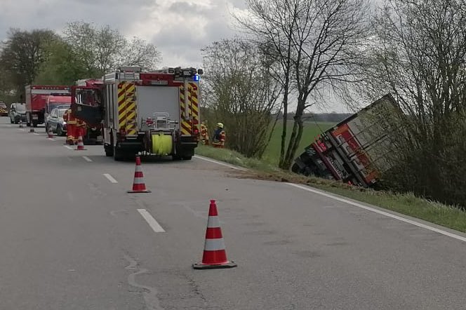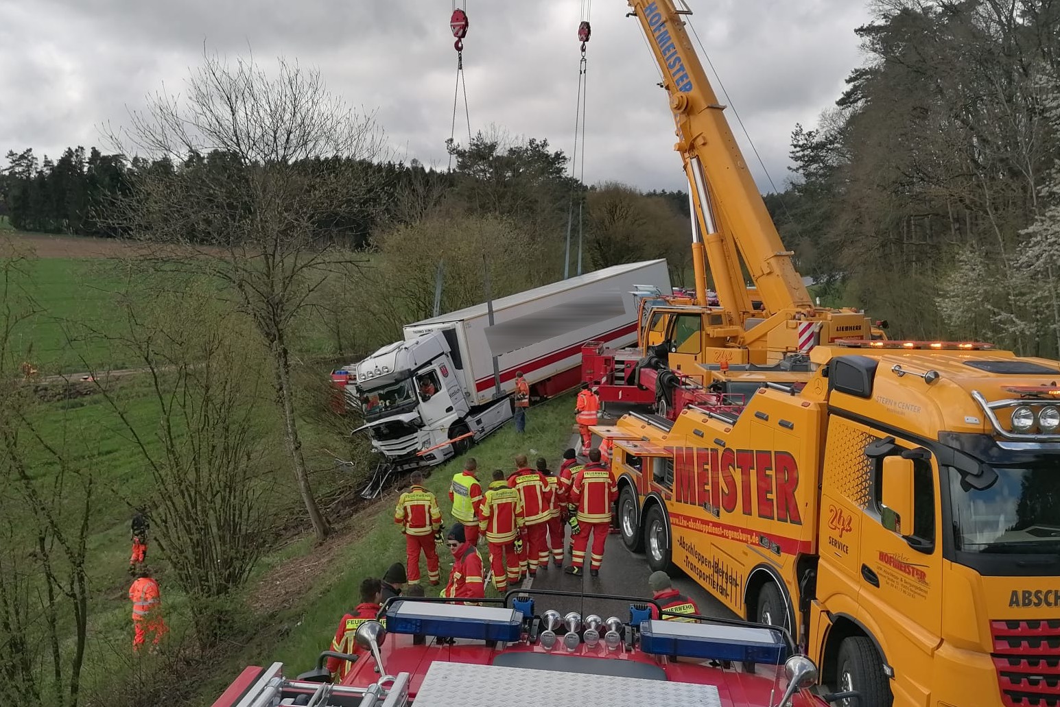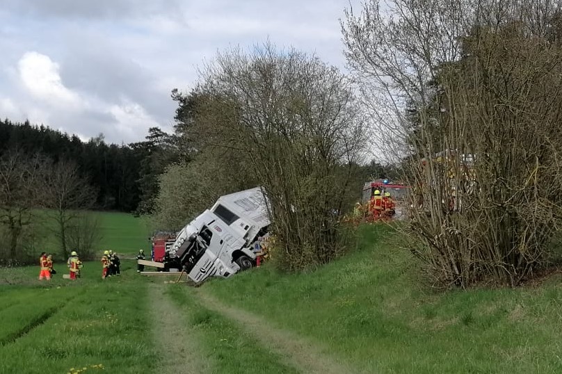 Der Lkw habe von einem Spezial-Unternehmen unter Zuhilfenahme von Spezial-Kränen geborgen werden müssen, berichtet die Polizei. Glücklicherweise hätten Bäume und Sträucher ein weiteres Umkippen des Sattelzugs verhindert, heißt es ergänzend im Einsatz-Bericht der Feuerwehr von Langquaid. "Um gefahrlos arbeiten zu können und ein weiteres Umkippen beziehungsweise Abrutschen des verunfallten Lkw zu verhindern, wurden die Feuerwehr Abensberg und das Technische Hilfswerk Kelheim nachalarmiert", schreibt der stellvertretende Kommandant Tobias Schmid. Gemeinsam habe man den Sattelzug abgestützt und gesichert.