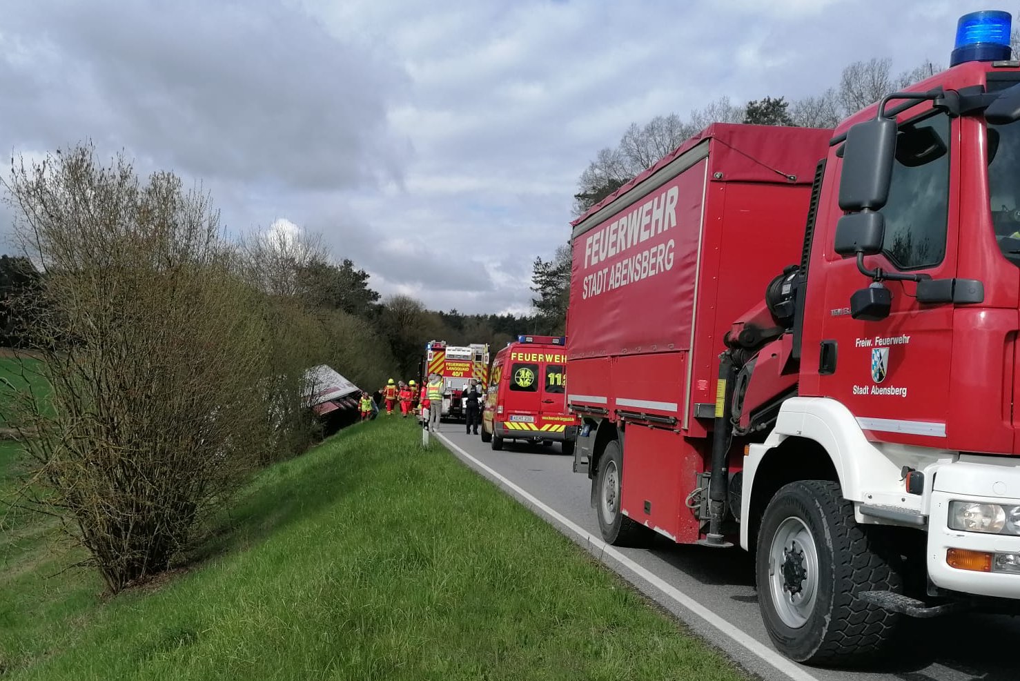 Die Feuerwehren übernahmen außerdem die Verkehrs-Absicherung und leiteten den Verkehr angesichts der stundenlangen Vollsperrung auch großräumig um. Zum Einsatz kamen Leute von den Freiwilligen Feuerwehren aus Langquaid, Helchenbach und Abensberg sowie vom Technischen Hilfswerk (THW) aus Kelheim. Außerdem waren Streifenbeamte von der Polizeiinspektion aus Kelheim vor Ort sowie die besagte Fach-Firma für die Bergungs-Maßnahmen. Zur Höhe des entstandenen Sachschadens machte die Polizei heute keine Angaben.