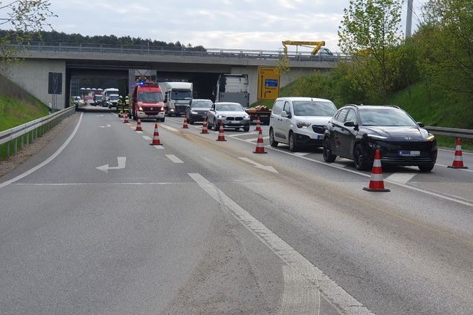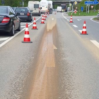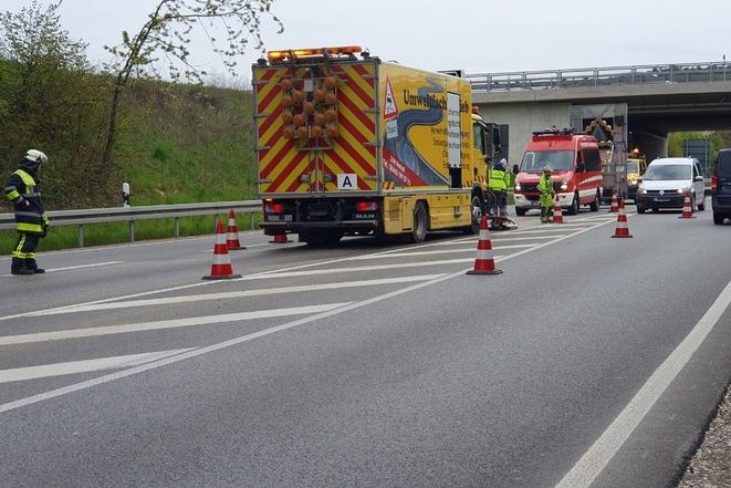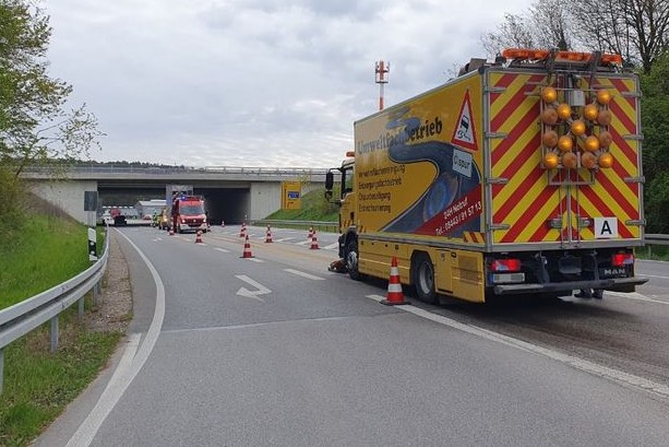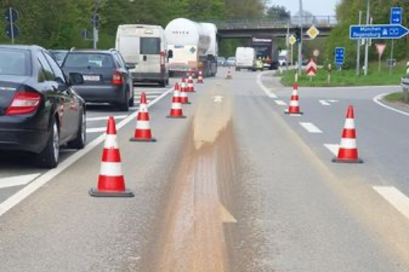 Aus der Oberpfalz kommender Lkw hinterließ Spur von Glasschleif-Schlämmen. Zunächst war unklar, wie gefährlich die Stoffe sind. Polizei ermittelt gegen Fahrer.