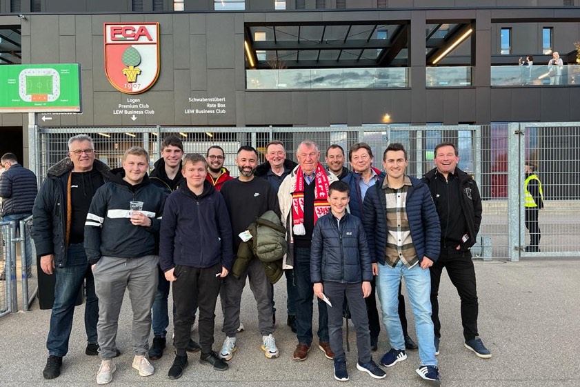 (ty) Auf Einladung des FC Augsburg hat eine Delegation der Fußball-Schiedsrichter-Gruppe aus Pfaffenhofen die Bundesliga-Begegnung des FCA gegen den VfB Stuttgart besucht. Unter der Leitung des stellvertretenden Gruppen-Obmanns Fabian Anders und des stellvertretenden Lehrwarts Derya Gleisenberg diente das spannende Spiel, das von Referee Christian Dingert geleitet wurde, den Unparteiischen aus dem Landkreis Pfaffenhofen sozusagen als Anschauungs-Beispiel. Dingert musste, so geht aus der Statistik hervor, insgesamt 29 Fouls ahnden. Acht Mal zeigte er die gelbe Karte. Das Spiel endete 1:1. Das Gruppen-Foto (siehe oben) zeigt die Pfaffenhofener Schiris vor dem Stadion.