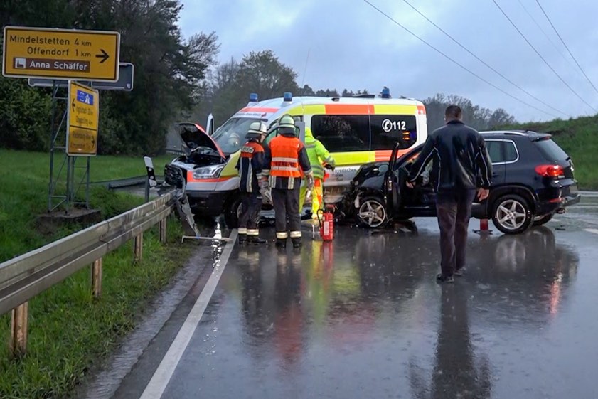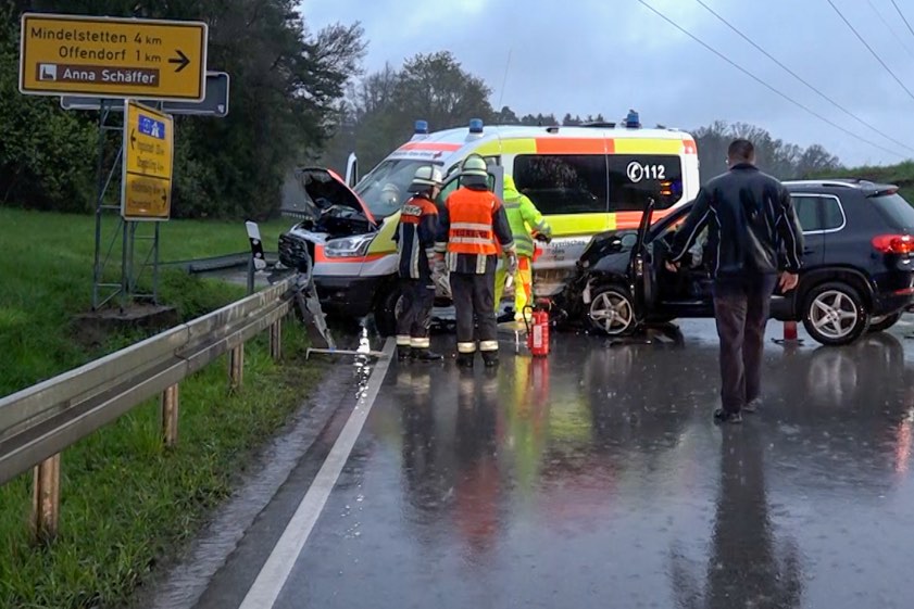 (ty) Insgesamt vier Verletzte hat ein heftiger Verkehrsunfall gefordert, der sich am frühen gestrigen Abend im Gemeinde-Gebiet von Oberdolling im Landkreis Eichstätt ereignet hat. Auf der Staatsstraße 2231 krachten gegen 18.30 Uhr zwischen Oberdolling und Mendorf ein Krankenwagen und ein Pkw zusammen. Wie aus dem Bericht der Polizeiinspektion aus Beilngries hervorgeht, war der Krankenwagen zum Unglücks-Zeitpunkt nicht auf Einsatzfahrt, hatte aber einen Patienten an Bord.